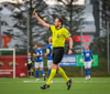 Fred að gera sig líklegan, sendingin fyrir en Selfoss koma boltanum í burtu. Gunnar tekur hann með höndum, Framarar vilja óbeina