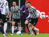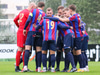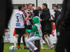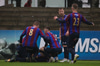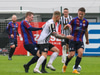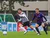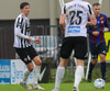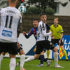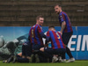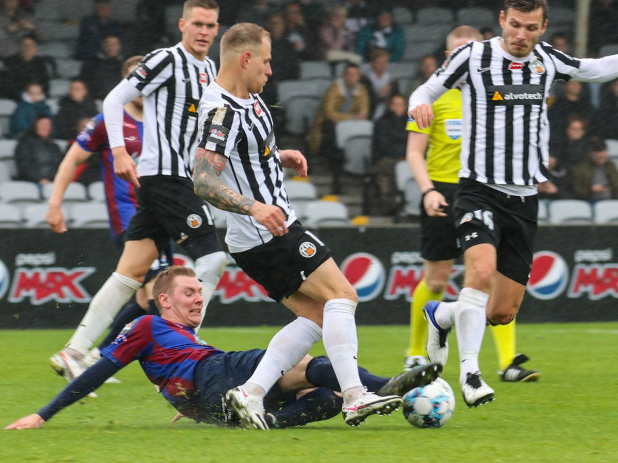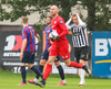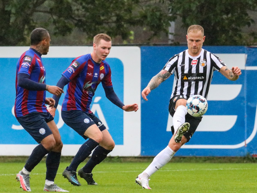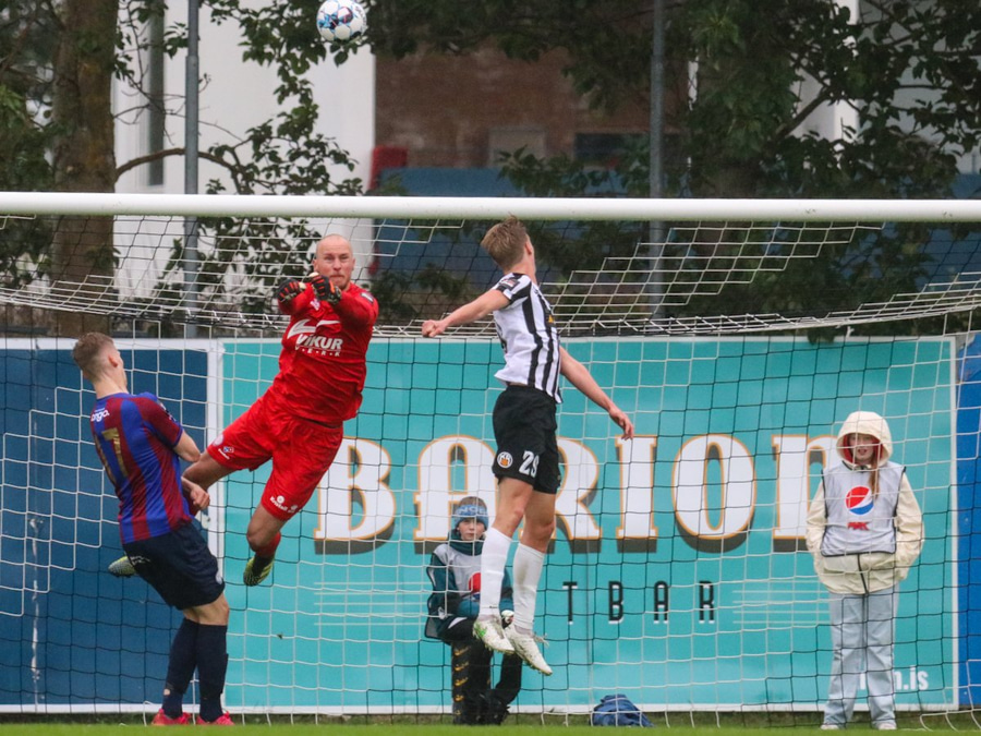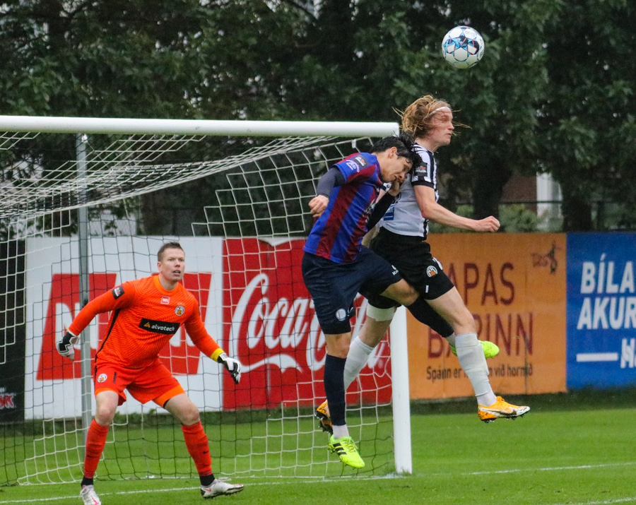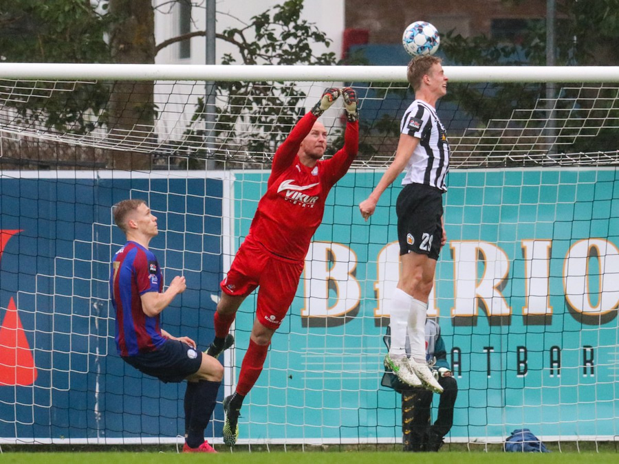 Theódór með skot sem Guy er í miklum vandræðum með. Kjartan er fyrstur á lausan bolta en finnur engann með sendingu sinni.