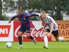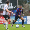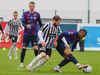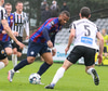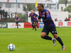 Kjartan reynir skot fyrir utan teig en Brynjar með flotta tæklingu og kemst fyrir skotið.