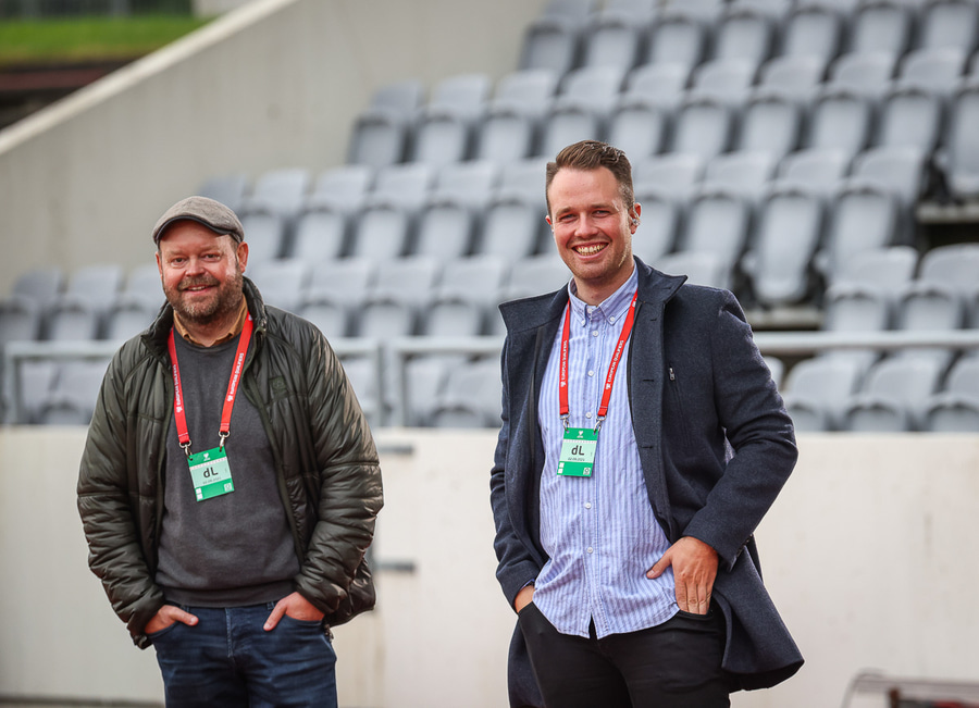 Gunnar Birgis og Bjarni Guðjónsson lýsa leiknum fyrir áhorfendur RÚV.