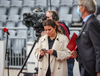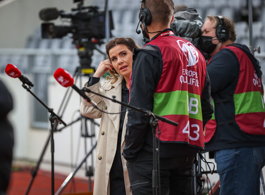 Rúmensk fjölmiðlakona spurði Arnar, landsliðsþjálfara, út í andstæðing kvöldsins og hver væri lykilmaður liðsins.