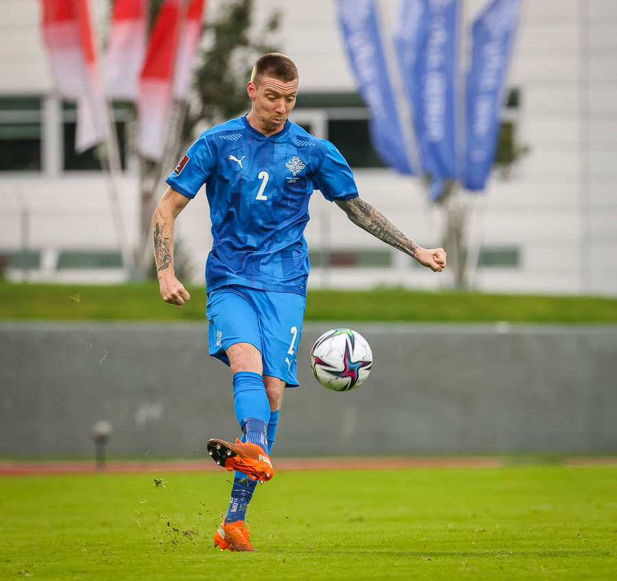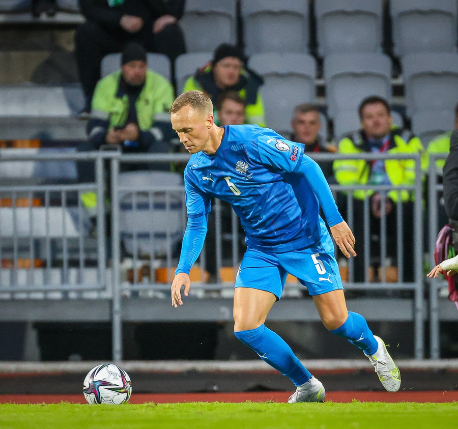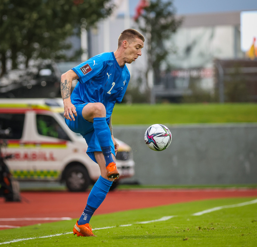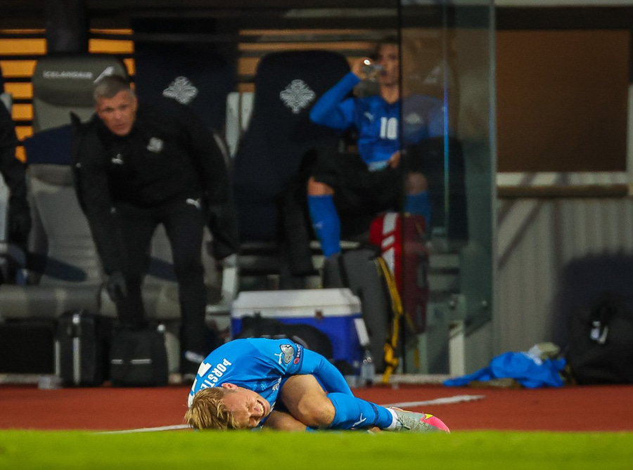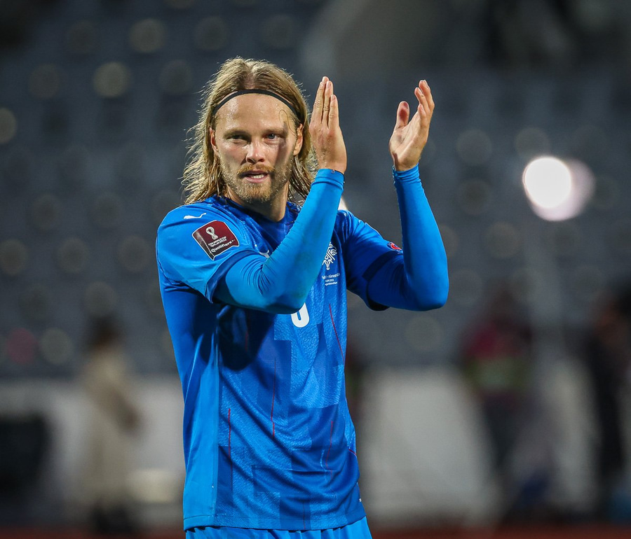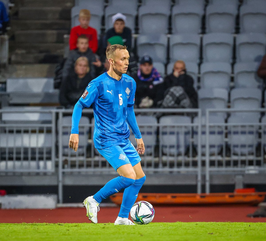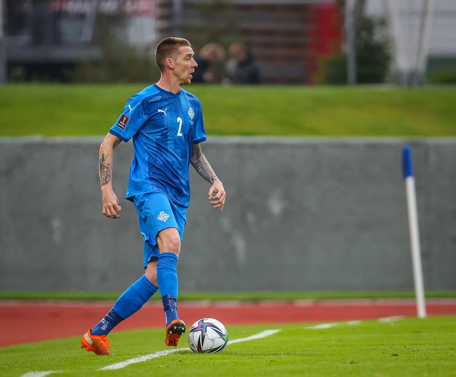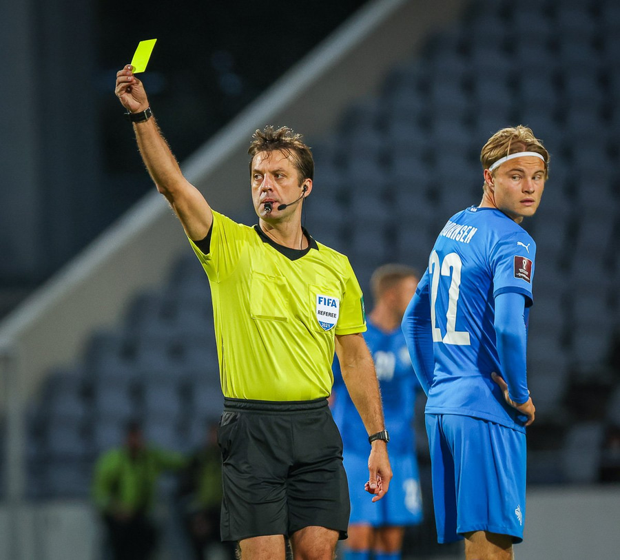 Gult spjald: Jón Dagur Þorsteinsson (Ísland)