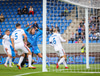 Birkir með skalla eftir hornið en nær engum krafti í skallann sem markvörðurinn hirðir upp í rólegheitum.