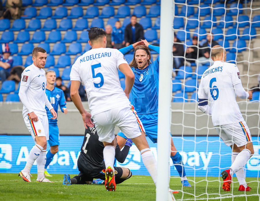 Boltinn að endingu í hendur Florin í marki Rúmena.