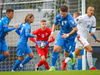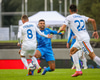 Boltinn settur í svæði en menn skrefinu of fljótir og Rúmenar hreinsa.