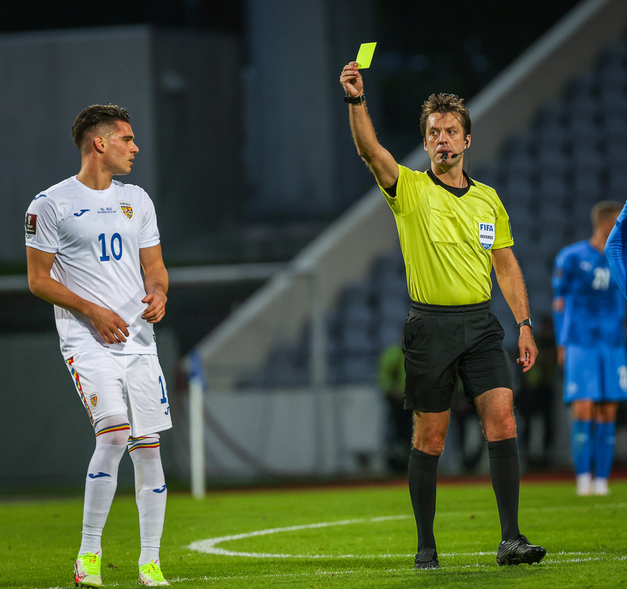 Gult spjald: Dragos Nedelcu (Rúmenía)