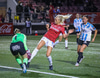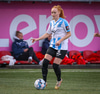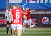 Brenna með flottan snúning og á fyrirgjöf fyrir markið en skallinn frá Caity Heap er ekki góður.