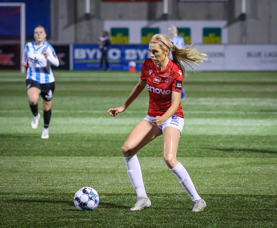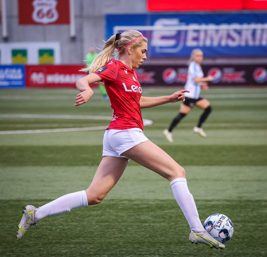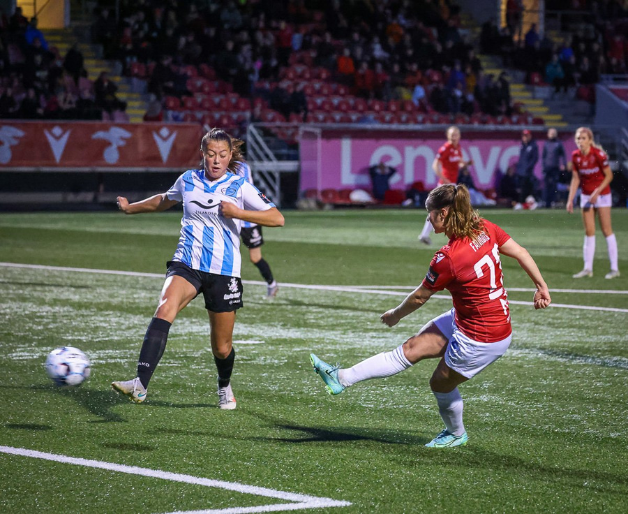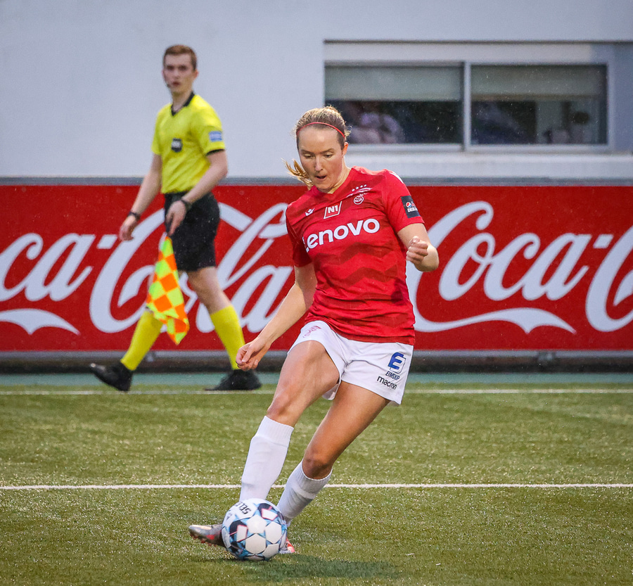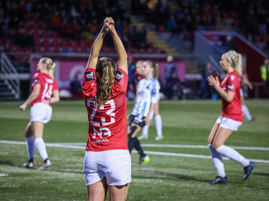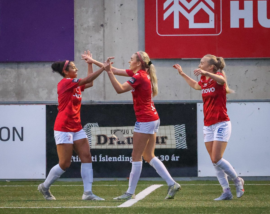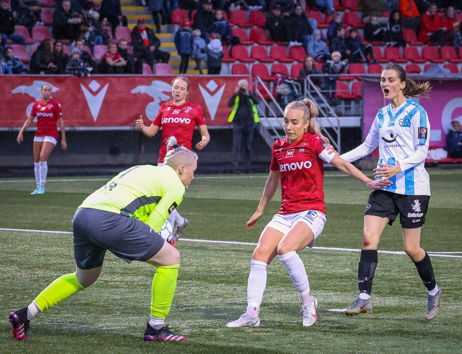 Valskonur í hörkufæri en Benedicte ver frábærlega frá Fanndísi. Elísa Viðars var með frábæra skiptingu inn á Fanndísi sem var alein á auðum sjó en frábærlega varið.
