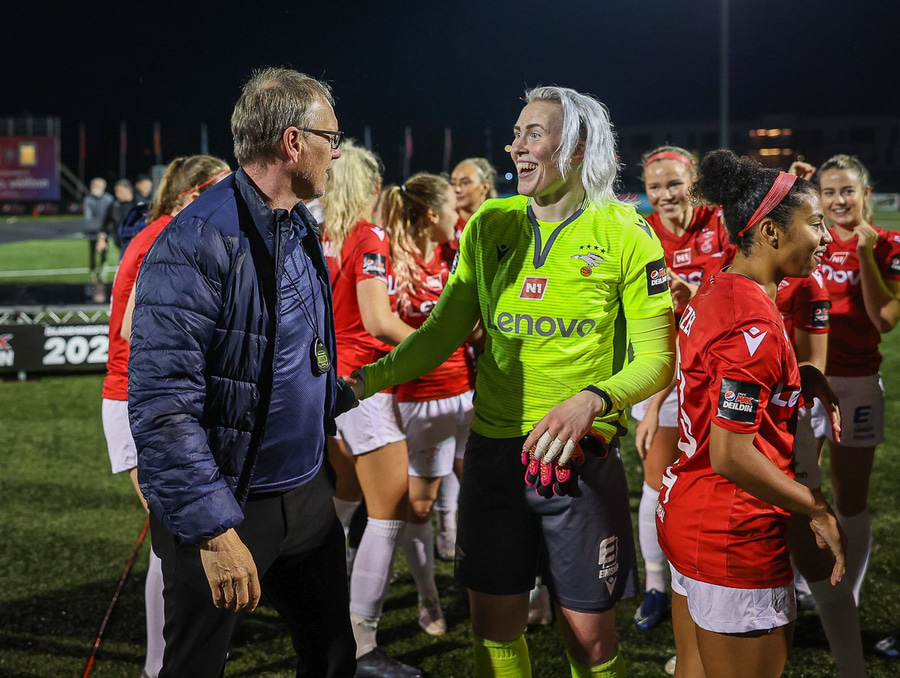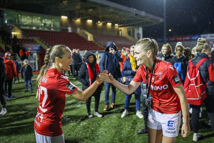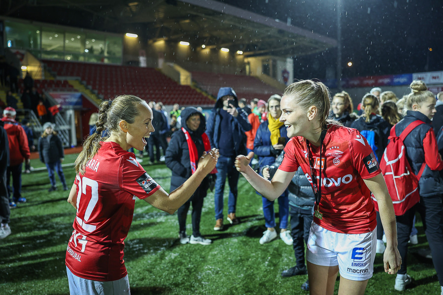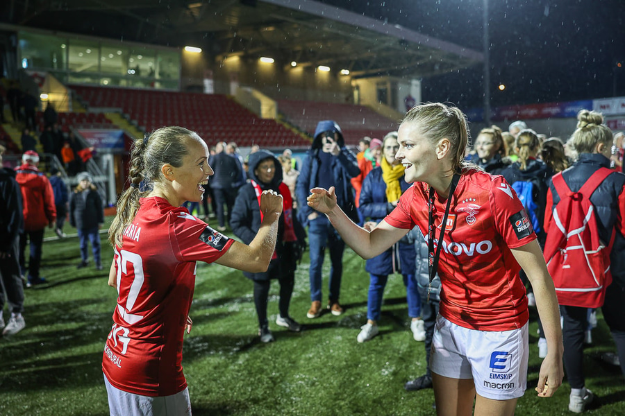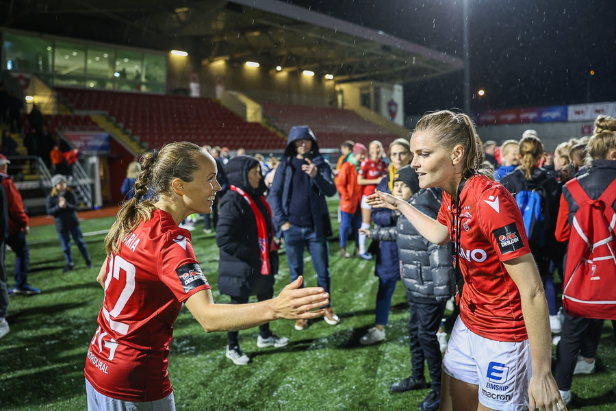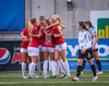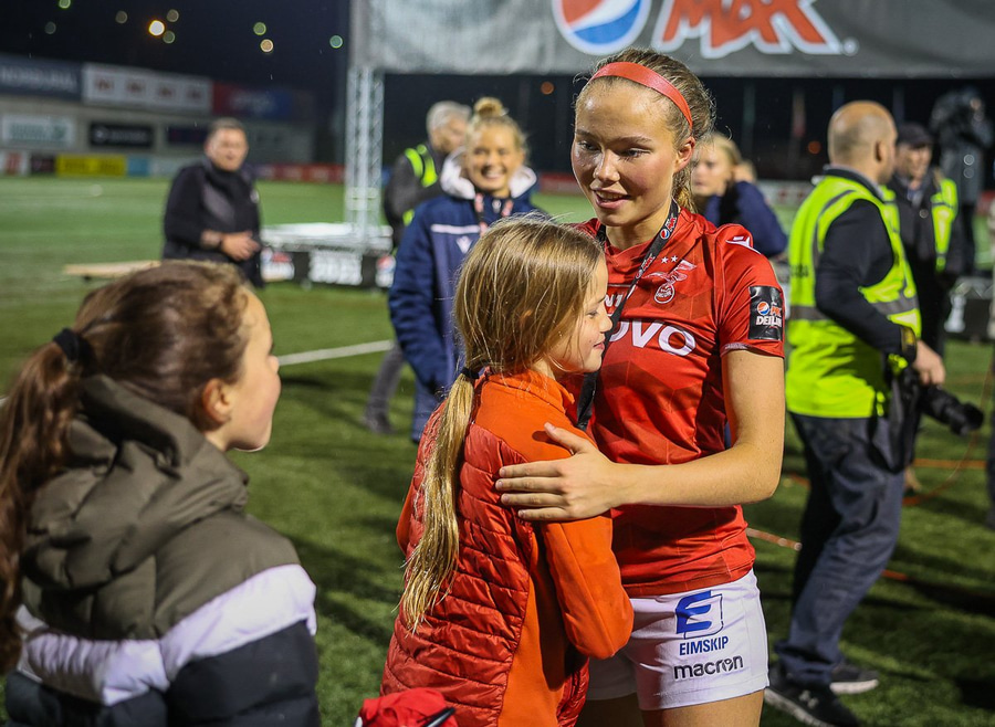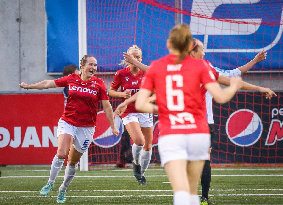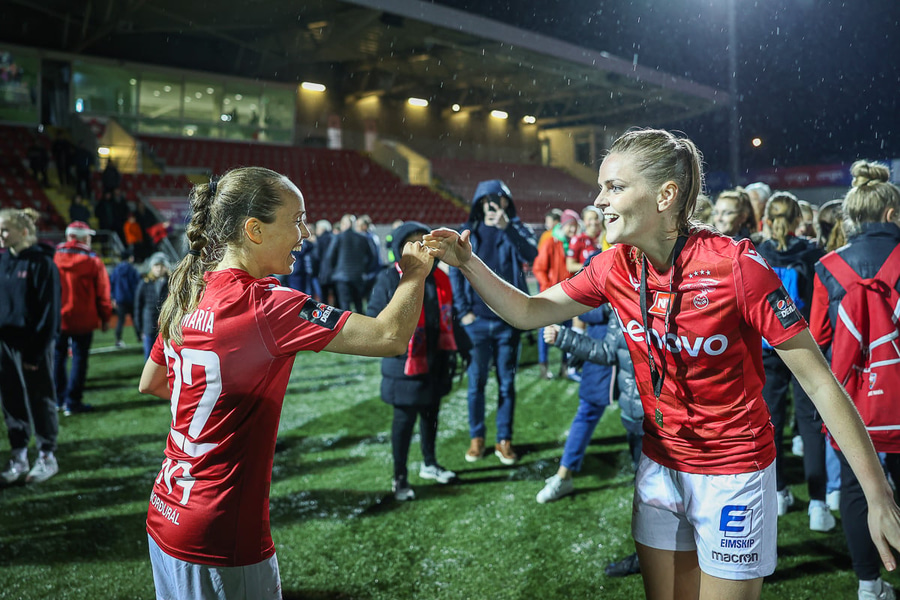 Valskonur í hörkufæri en Benedicte ver frábærlega frá Fanndísi. Elísa Viðars var með frábæra skiptingu inn á Fanndísi sem var alein á auðum sjó en frábærlega varið.
