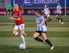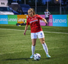 Valskonur með langan bolta fram ætlaðan Fanndísi en Benedicte er vel á verði í marki Selfoss og sópar það upp.