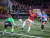 Fanndís er komin á blað! Er þrædd innfyrir og lyftir boltanum snyrtilega yfir Benedicte.