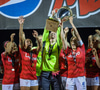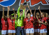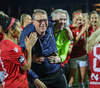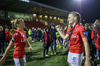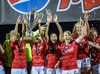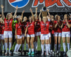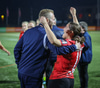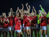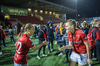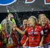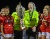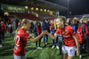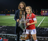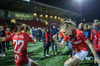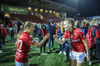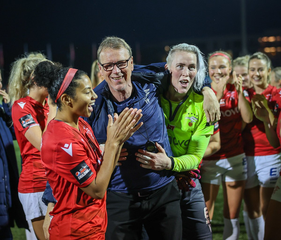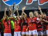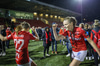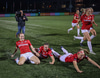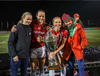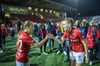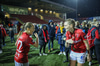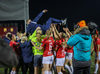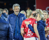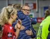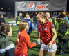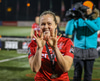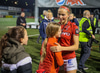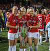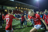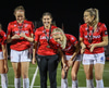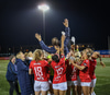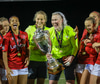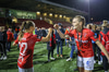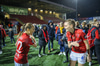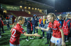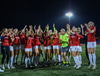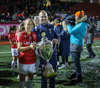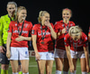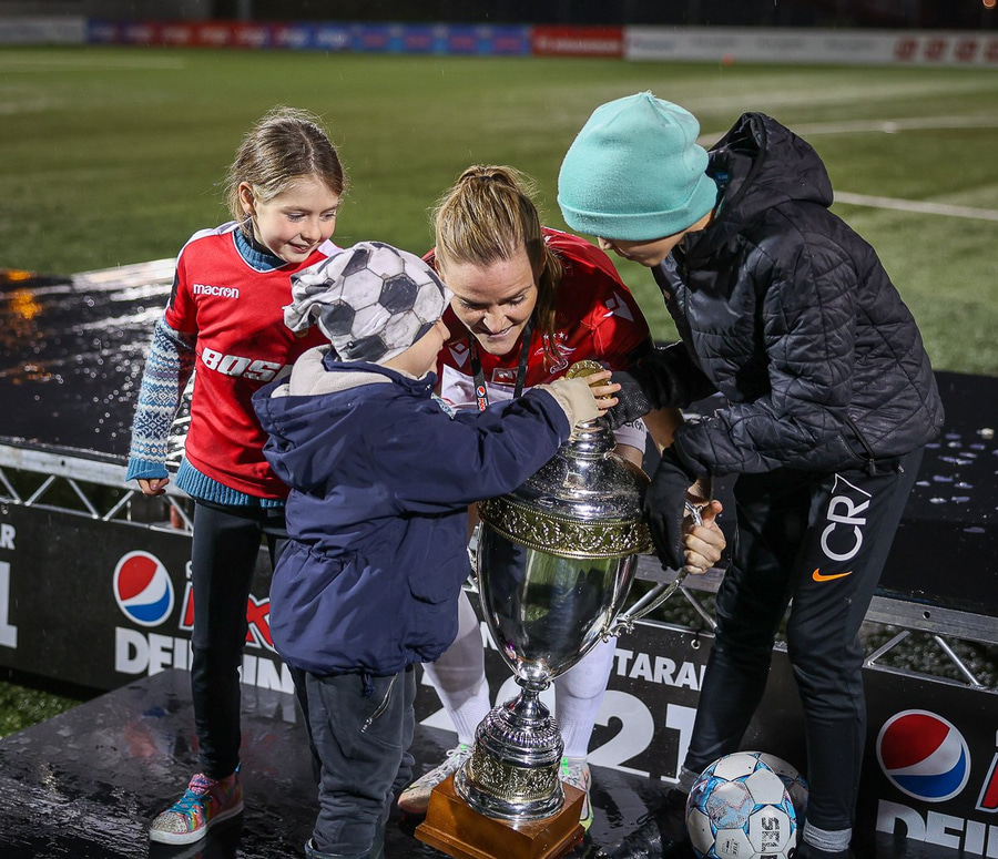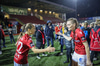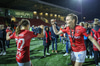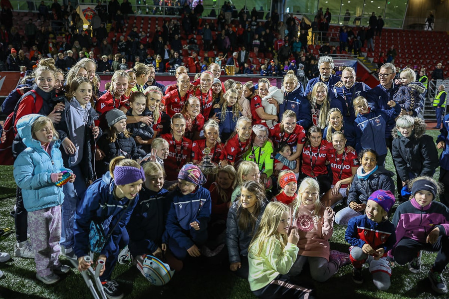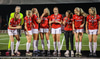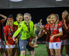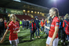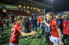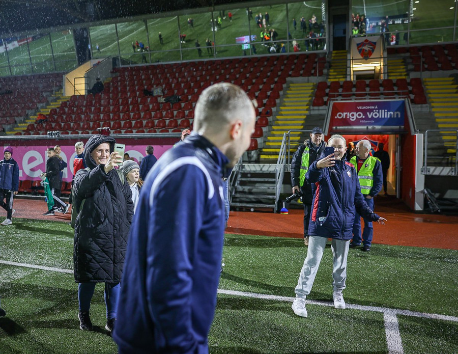Selfyssingar stilla sér upp í heiðursvörð fyrir Valsstelpurnar. Virðingavert frá Selfoss að heiðra Íslandsmeistarana 2021.