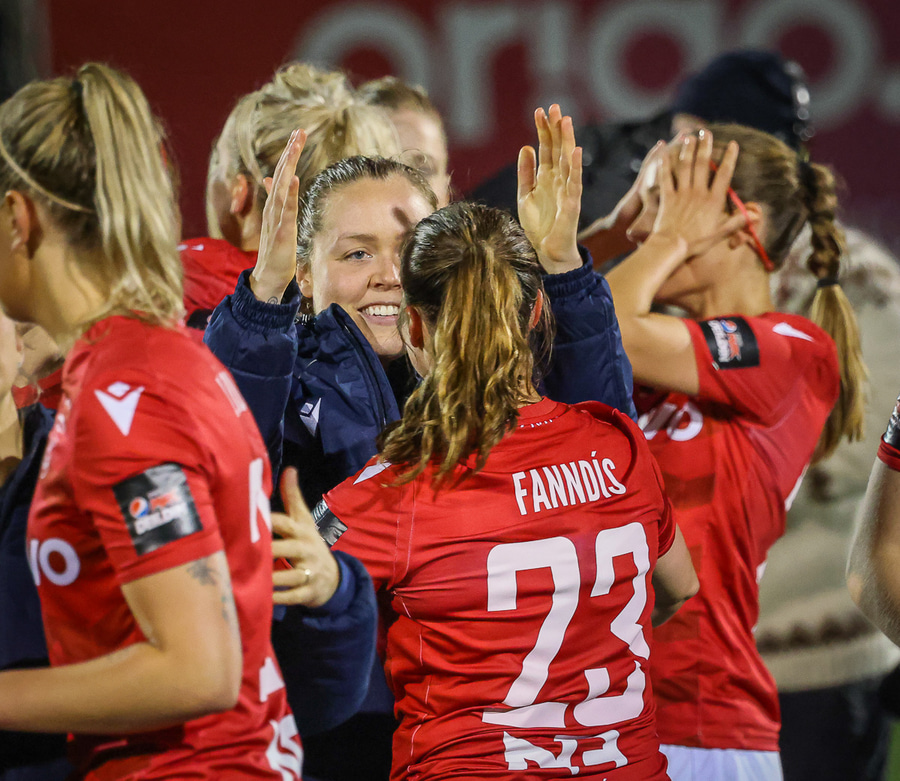 Valskonur hafa aðeins tekið fótinn af bensíngjöfinni í seinni hálfleik. Eru að sigla þessu nokkuð þægilega í endamarkið.