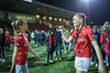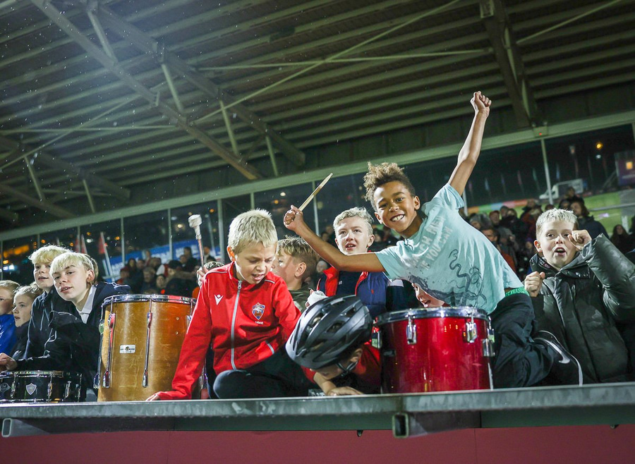 Valsmenn eru allir staðnir upp í stúkunni og tilbúnir að fagna Íslandsmeistaratitlinum þegar Aðalbjörn flautar til leiksloka.