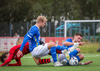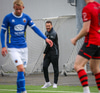Í kjölfar hornspyrnu skorar Kyle með skalla. Kórdrengir vilja að dæmt sé á Kyle enda liggur Loic Ondo meiddur eftir. Egill dómari ósammála.