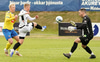 Stutt í hálfleiksflautið og enn markalaust. Fátt sem bendir til að það breytist. Eftir fjörugar fyrstu 30 mínútur er leikurinn orðinn meira miðjumoð og barátta.