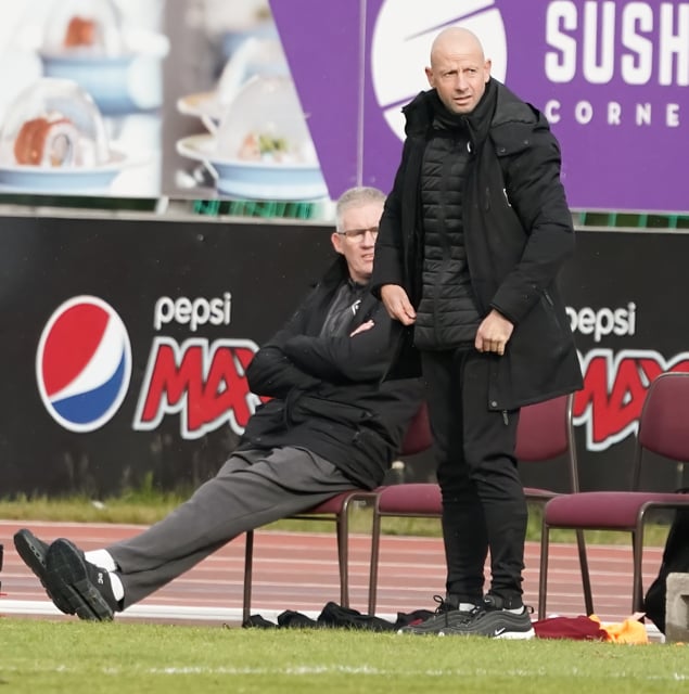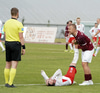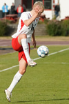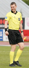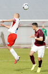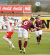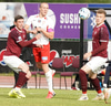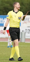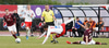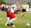 Þormar með misheppnaðan skalla er hann ætlaði að hreinsa frá. beint í Jóhann Helga en boltinn hrekkur hægt af honum til Stefáns.