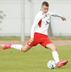 Bjarki með fyrirgjöf sem Bjarni skallar í átt að marki en skallinn laus og auðvelt fyrir Stefán að grípa.