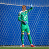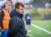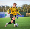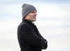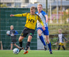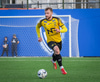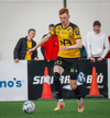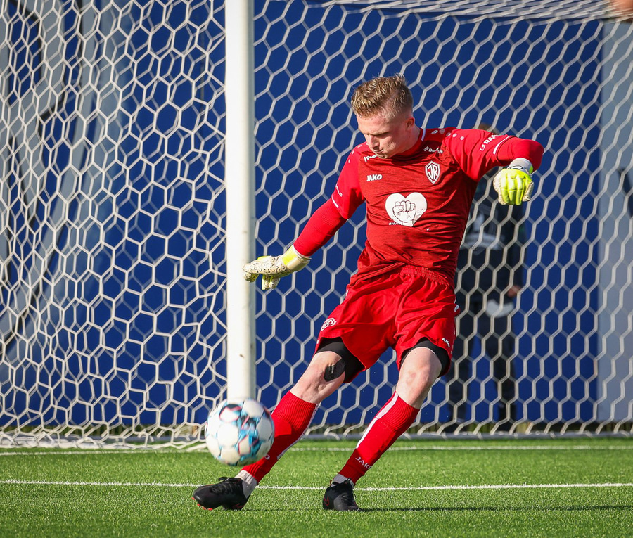 Reynir með fyrirgjöfina af vinstri kantinum en boltinn fer beint afturfyrir. Reynir er svekktur með sjálfan sig.