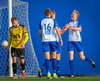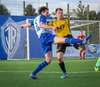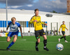 Halldór með afleita sendingu til baka og Guðmundur kemst inn í boltann og fer framhjá Aroni Óskari. Guðmundur rennir boltanum í markið.