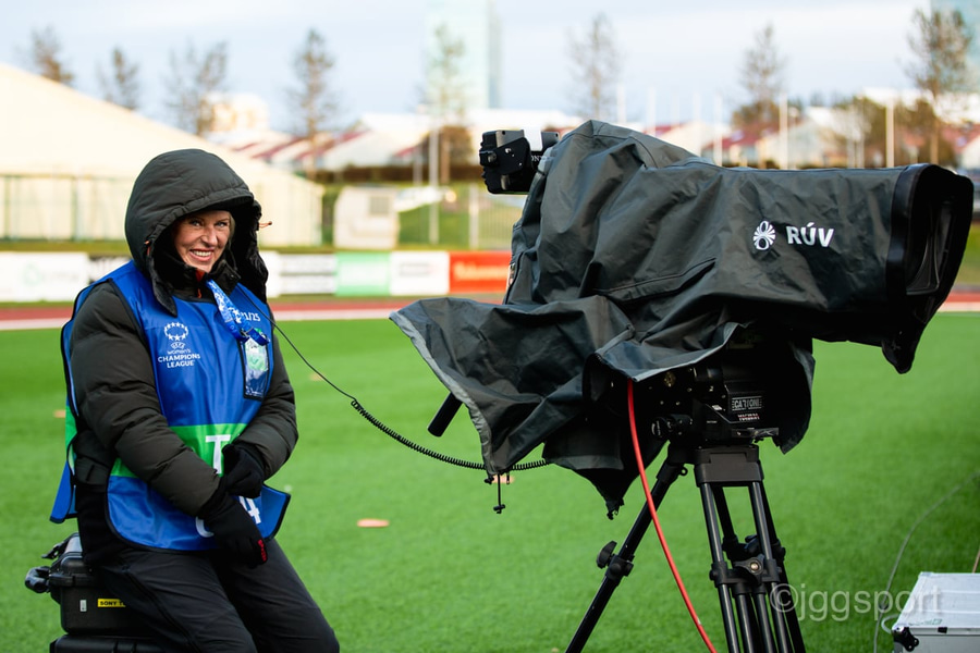 Agla tekur. Boltinn lyftist ekki frá jörðinni en fer út í hægra hornið þar sem Barbora Votíková handsamar knöttinn.