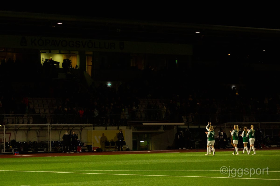 Við vorum að fá áhorfendatölur - alls eru 1412 manns mættir á Kópavogsvöll hér í kvöld. Geggjuð mæting, ég er hrikalega ánægð með þetta!