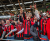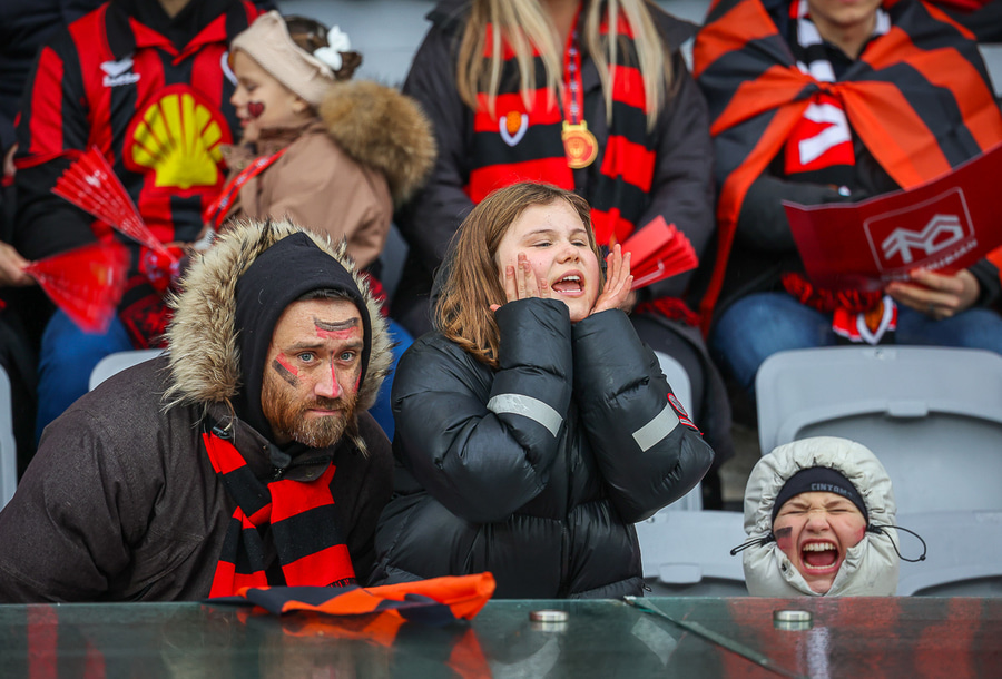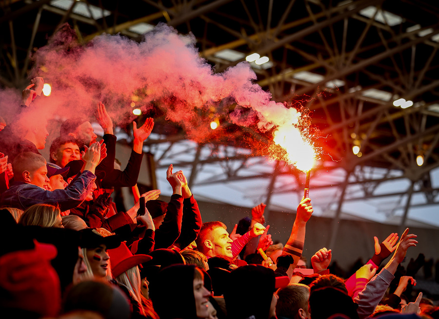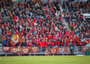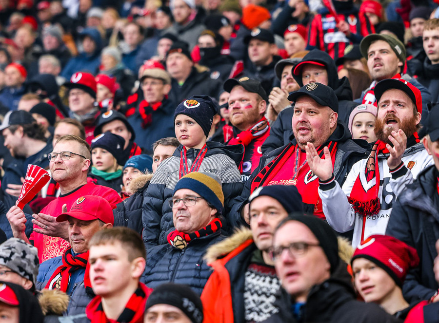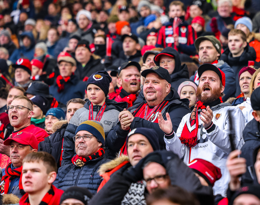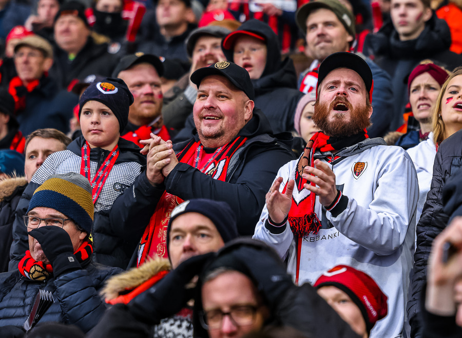 Það verður nú bara að segjast að stemningin í stúkunni er rafmögnuð og stuðningsmenn beggja liða auðvitað búnir að fjölmenna í stúkunna, frábært að sjá!