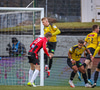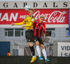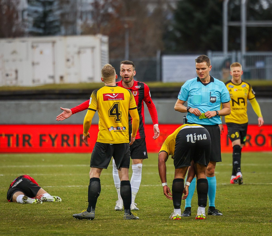 Nú liggja menn niðri!! Ísak og Ingvar lenda í samstuði og hlaupa menn inn á völlinn að gefa þeim aðhlynningu!