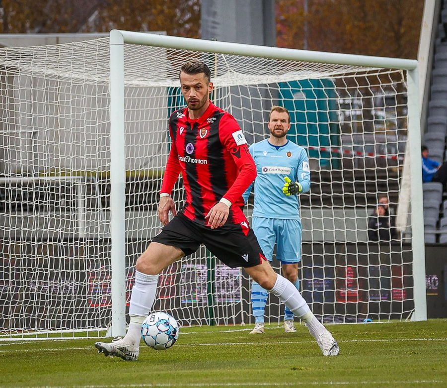 Boltinn dettur til Luigi sem reynir skot í fyrsta fyrir utan teig og boltinn fer rétt framhjá markinu!!