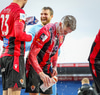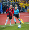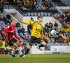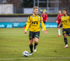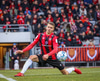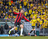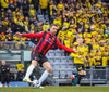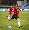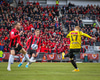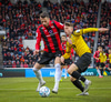 Kwame fær boltann á vinstri kantinum og keyrir inn á völlinn og reynir skot í nærhornið sem endar í stönginni!!