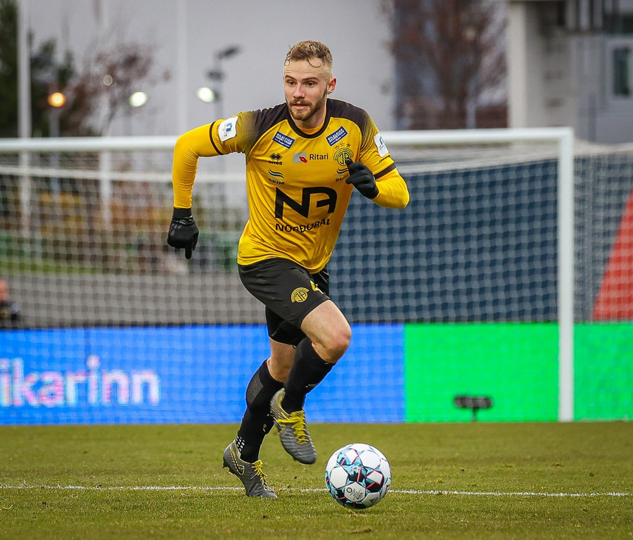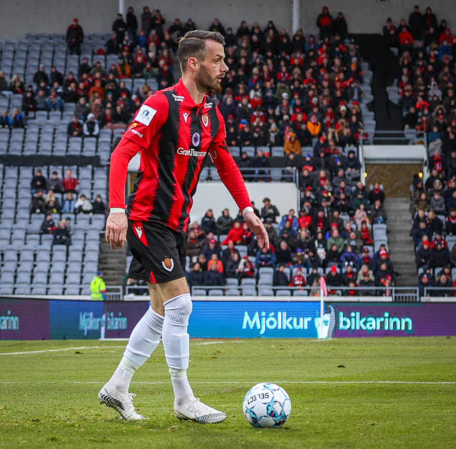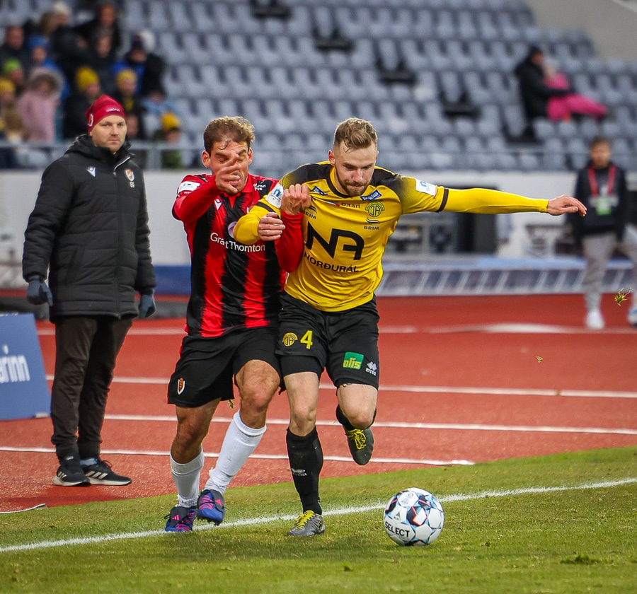 Atli Barkarson með aukaspyrnu fyrir utan teig og spyrnan er geggjuð yfir vegginn en syngur í hliðarnetinu!!