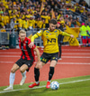 Kristall Máni keyrir upp að teig ÍA og reynir sendingu inn fyrir vörn Skagamanna, fer í varnarmann og fær boltann aftur og reynir skot í fjærhornið en boltinn rétt framhjá markinu!!