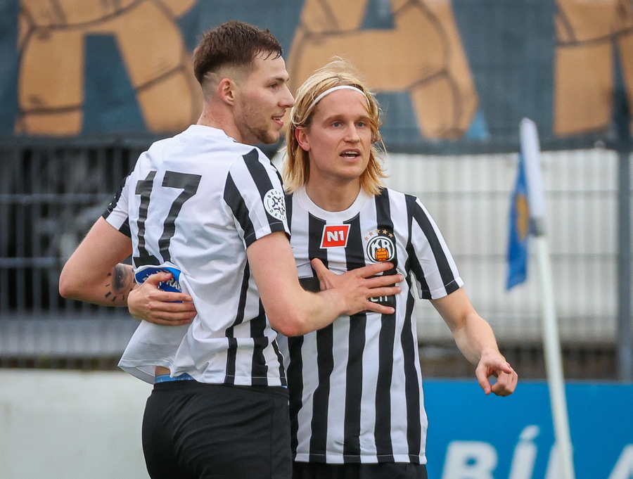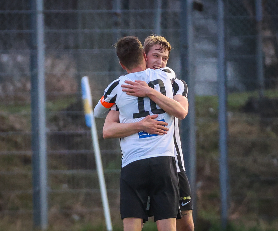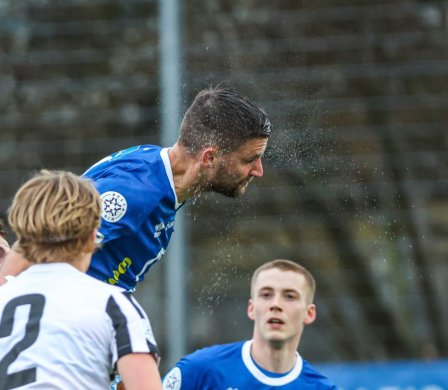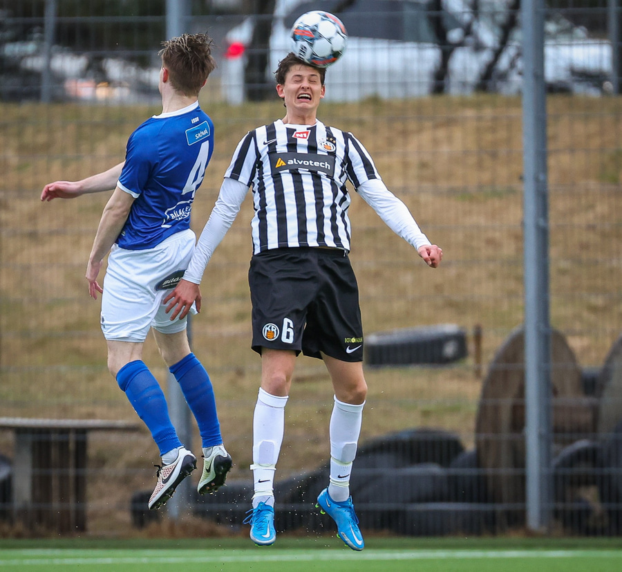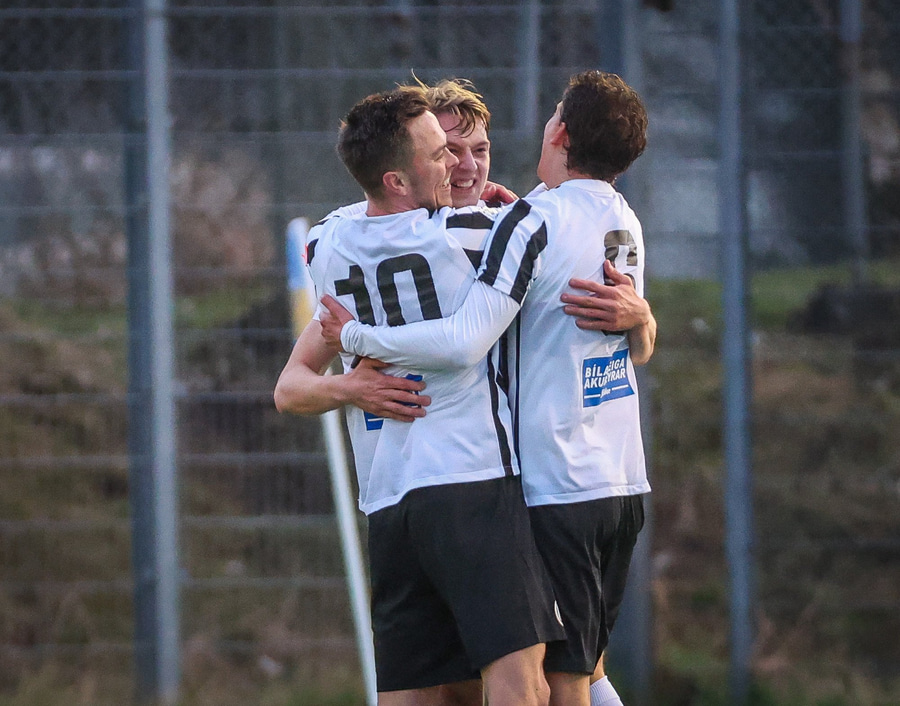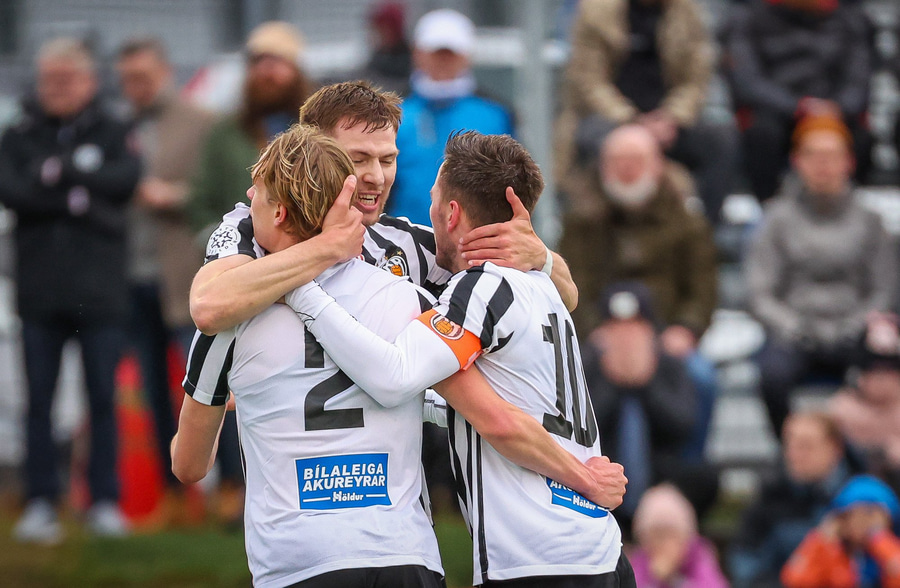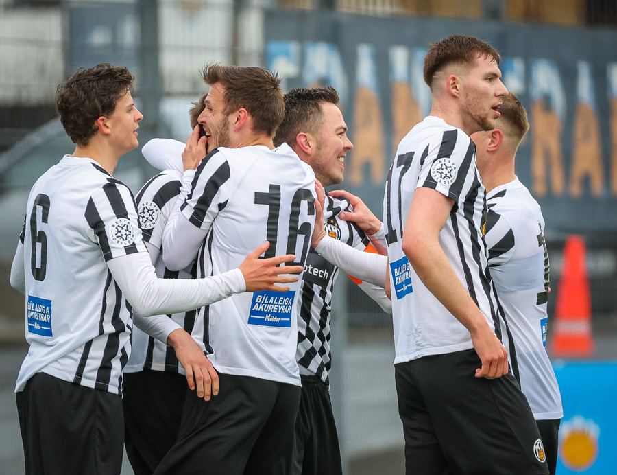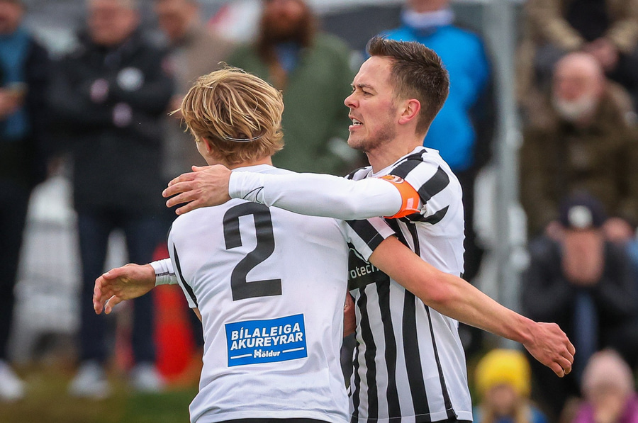 Aukaspyrna frá hægra vítateigshorni sett inn á nærstöng þar sem Finnur Tómas er skuggalega einn og skallar boltann í netið af mjög mjög mjög stuttu færi.