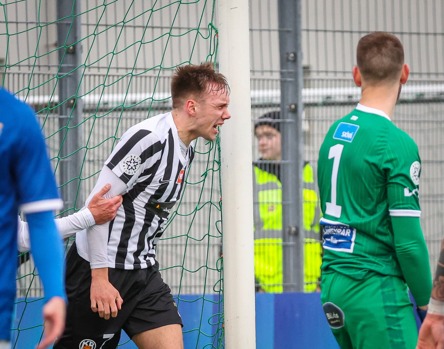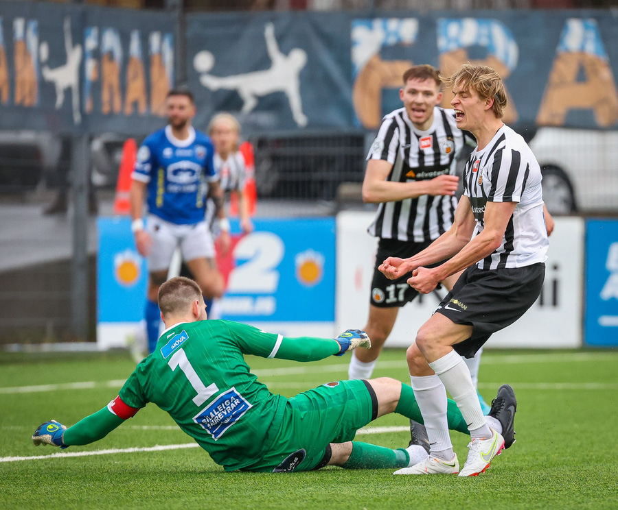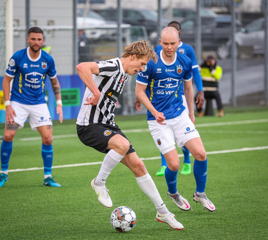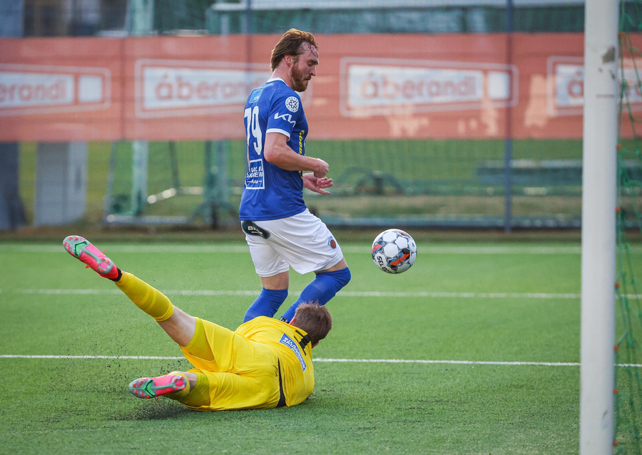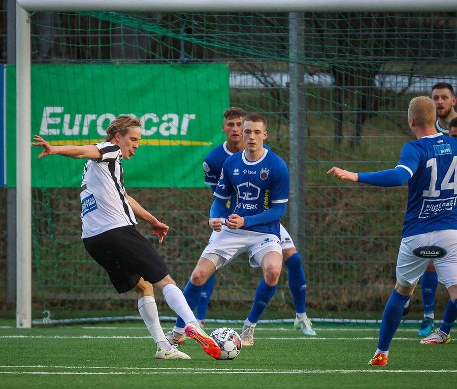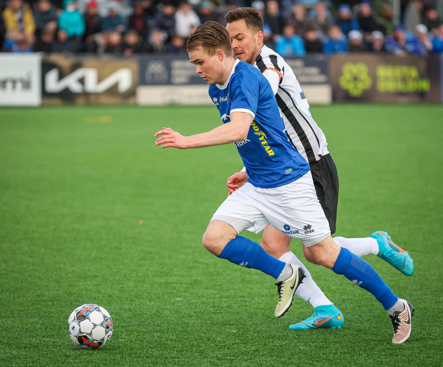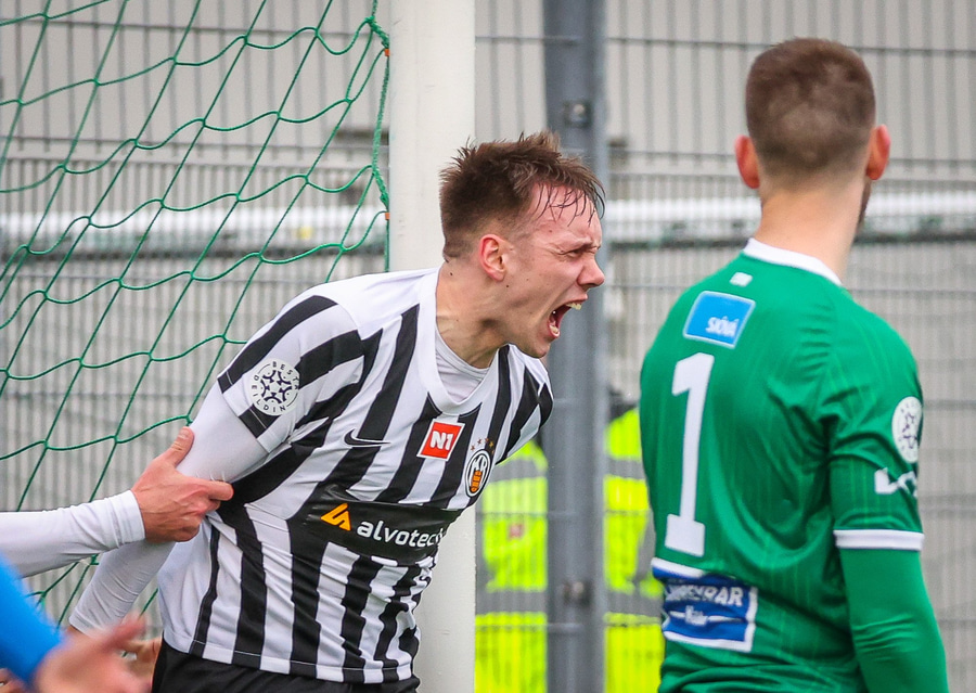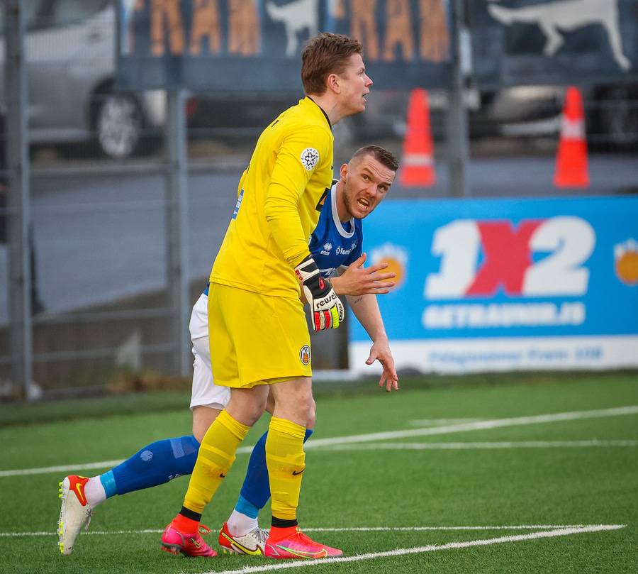 Indriði með lúmskt skot sem Beitir ver en heldur ekki. Jannik fylgir á eftir en Beitir snöggur að ná áttum og kastar sér fyrir og ver aftur, boltinn svo af Jannik og afturfyrir.