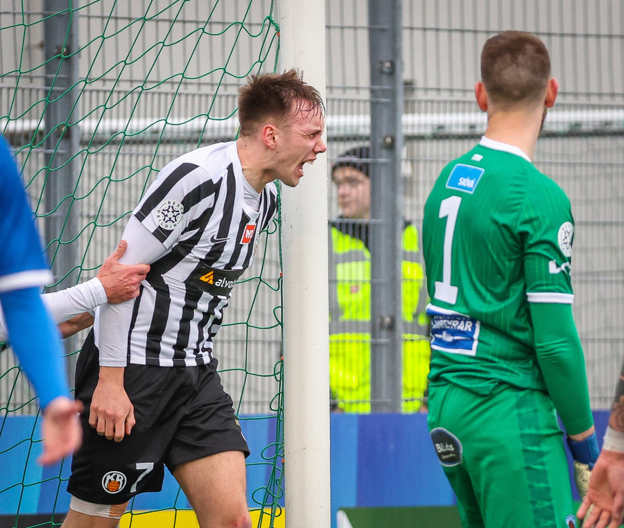 Atli kemst upp að endamörkum hægra megin og setur boltann fyrir markið. Delphin að mér sýnist kiksar boltann þegar hann reynir að hreinsa og fellur boltinn fyrir Stefán Árna 3-4 metra frá marki sem getur ekki annað en sett boltann í netið.