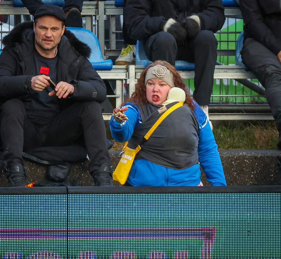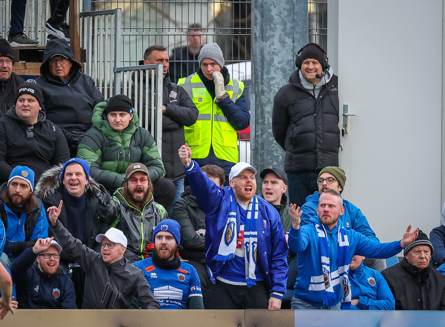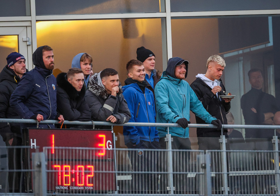 Fram gerir tilkall til vítaspyrnu en fjarlægðin gerir mér erfitt um vik að dæma þar um. En stúkan var viss í sinni sök.