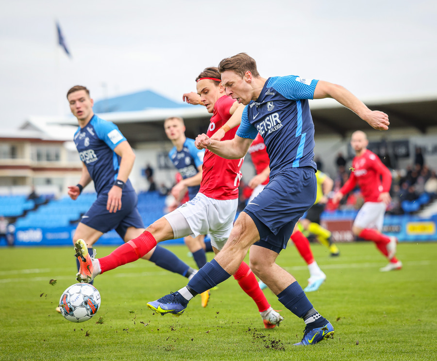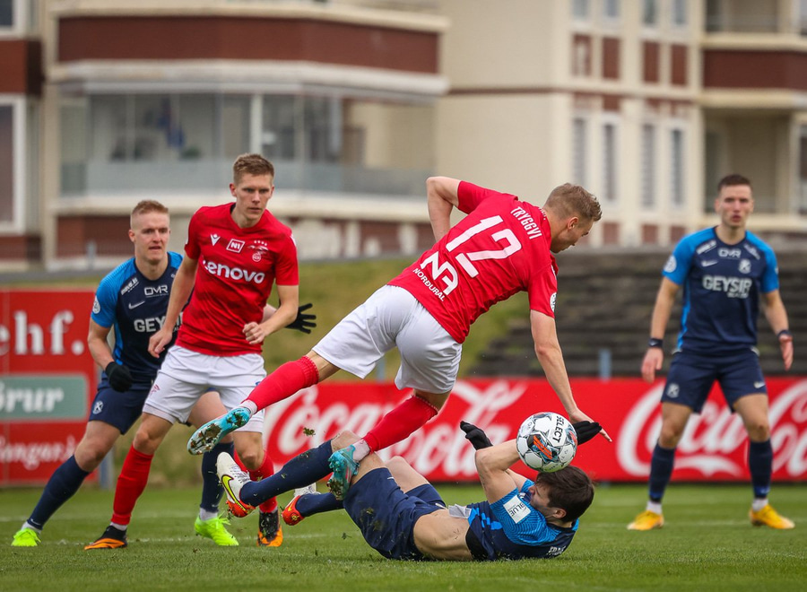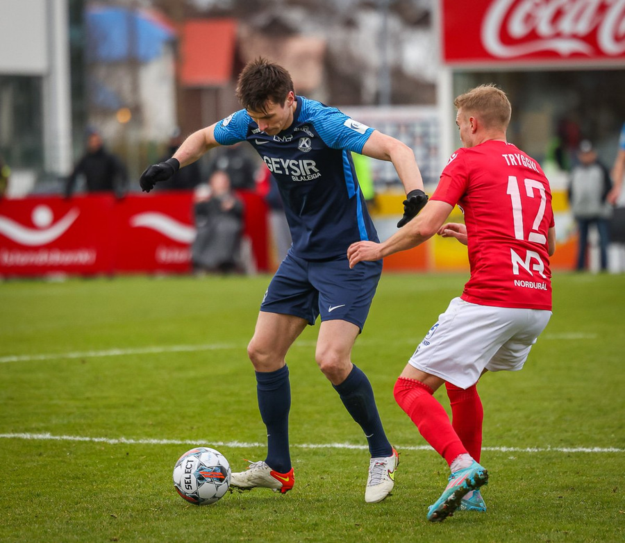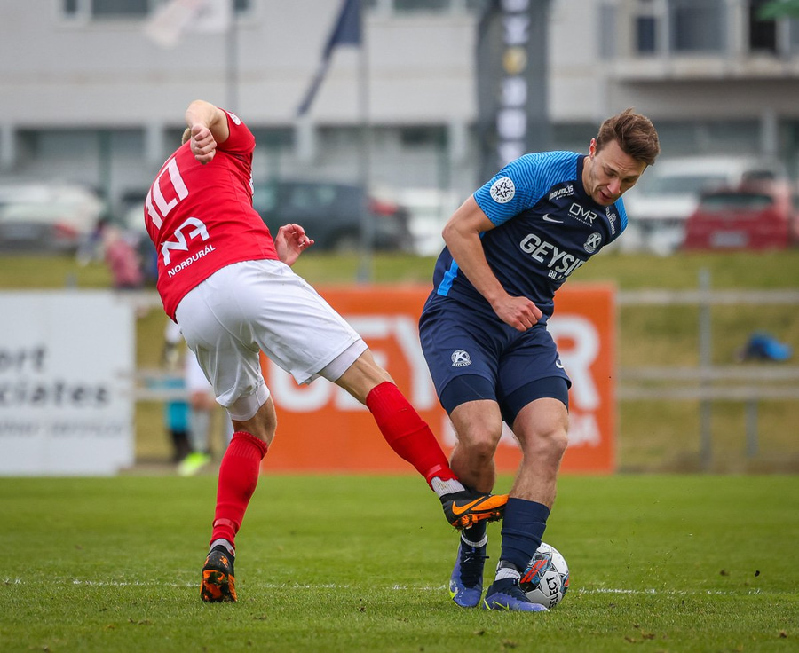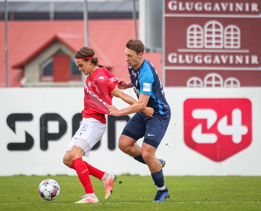 Sindri Þór með alvöru tæklingu á Guðmund Andra löglega þó og Guðmundur fann fyrir þessu.