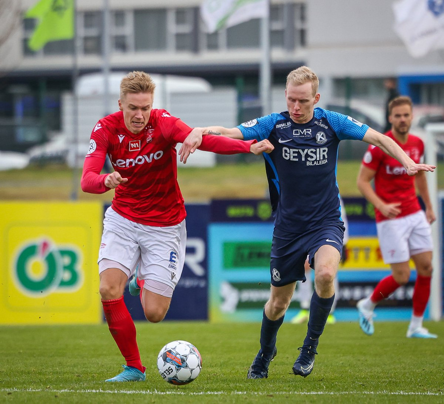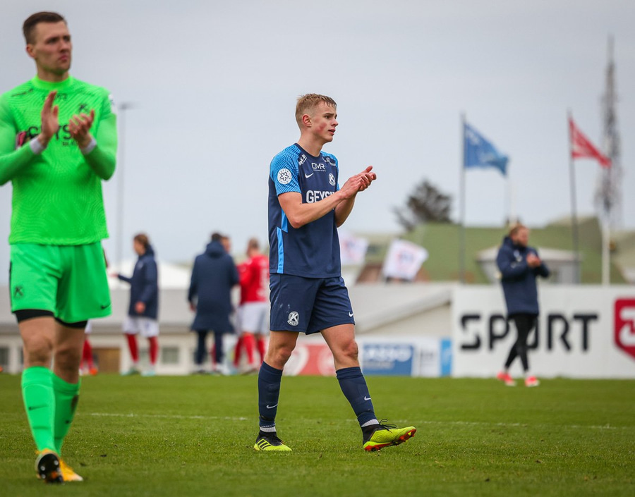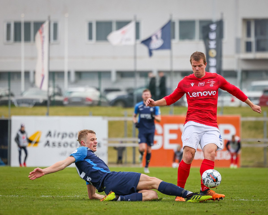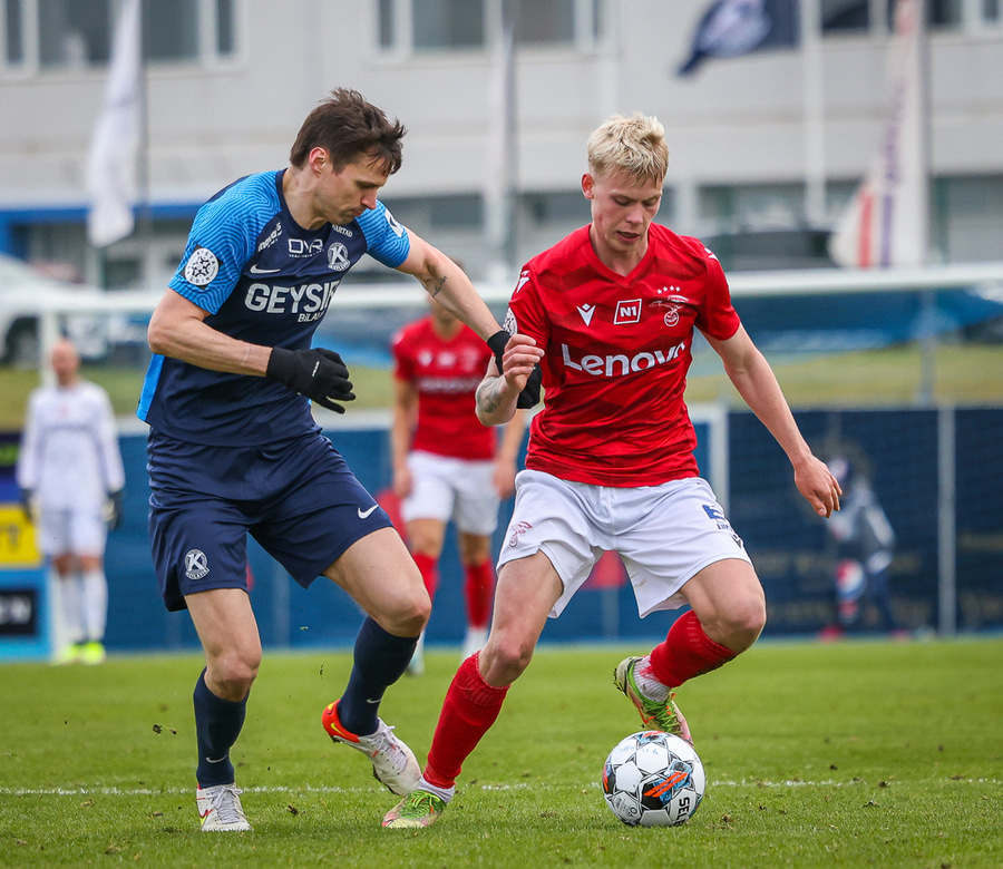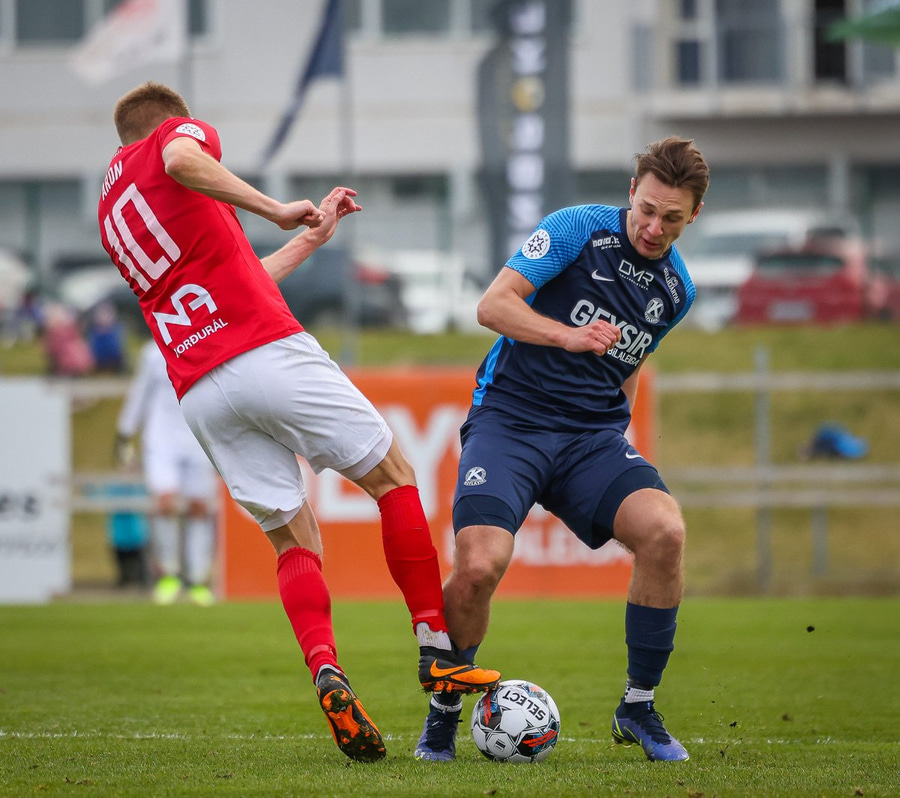 Sindri Þór með alvöru tæklingu á Guðmund Andra löglega þó og Guðmundur fann fyrir þessu.
