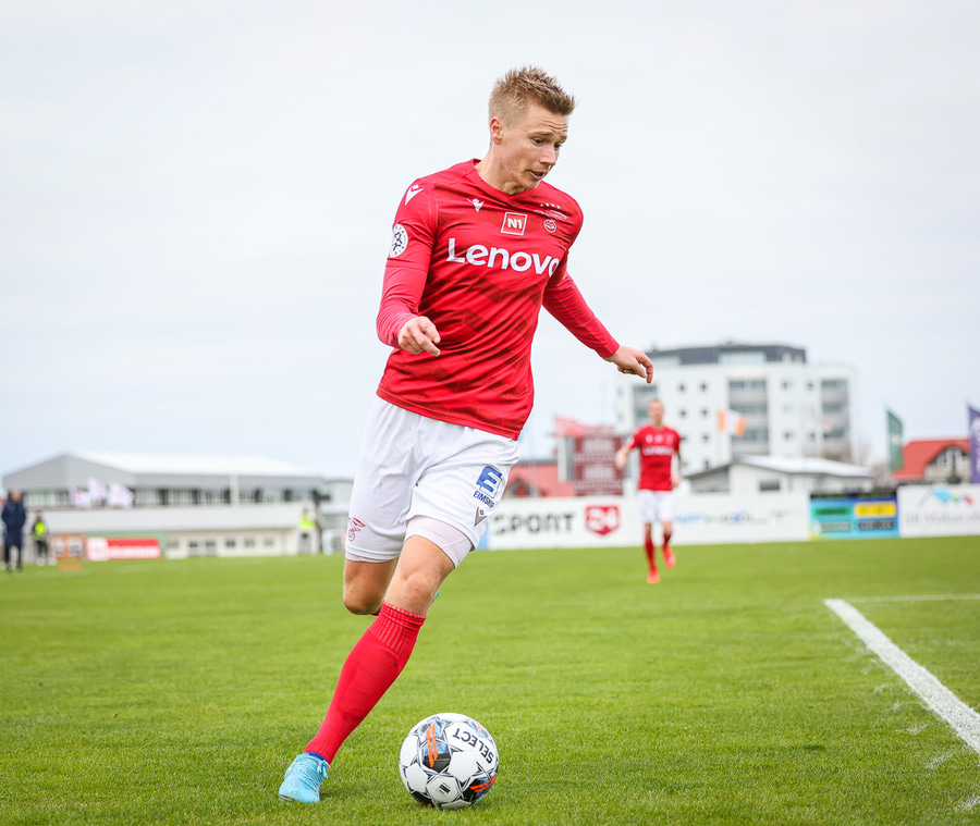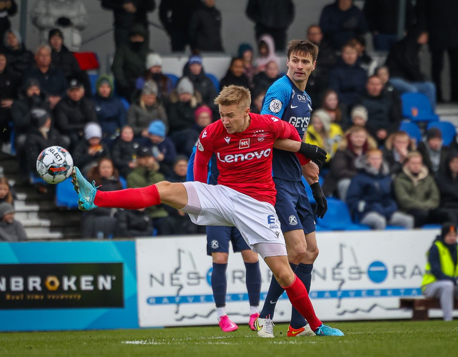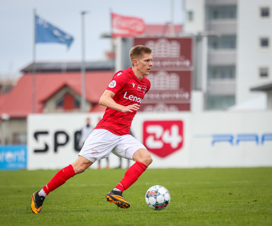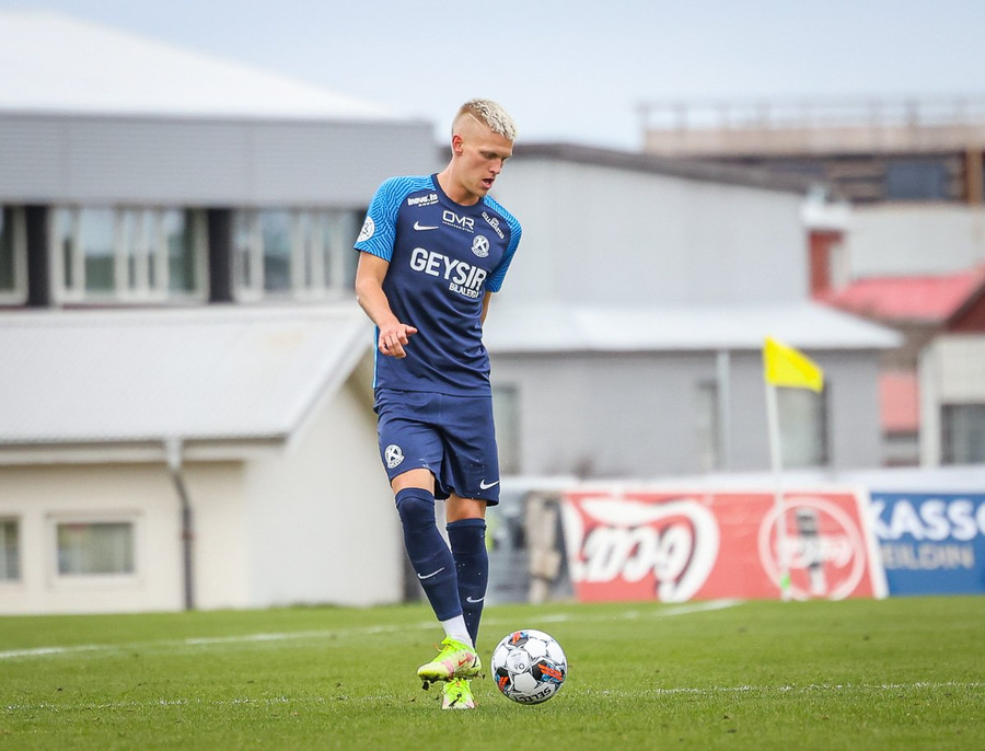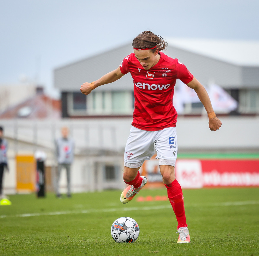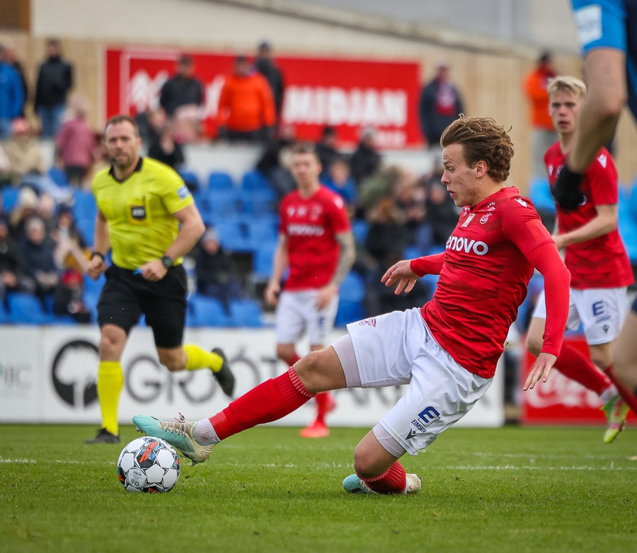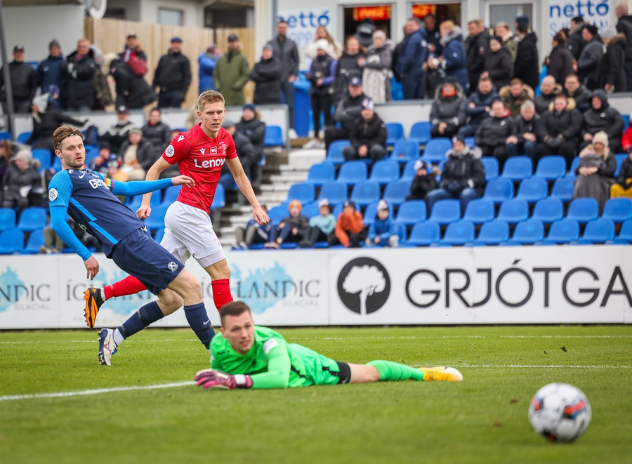 Leikur á Patrik og heldur svo bara áfram með boltann, rekur hann nánast upp að miðju þar sem hann missir hann fyrir fætur Frans sem reynir skotið en nær ekki nægum krafti í það og Hedlund kemst fyrir boltann.