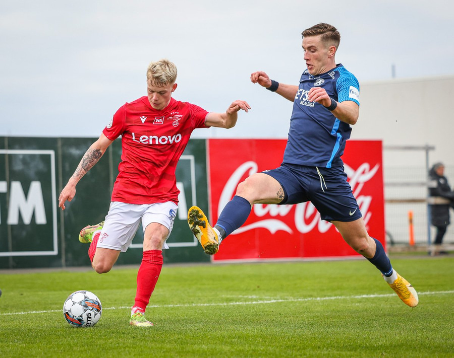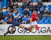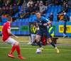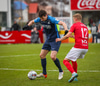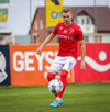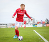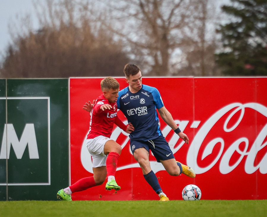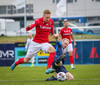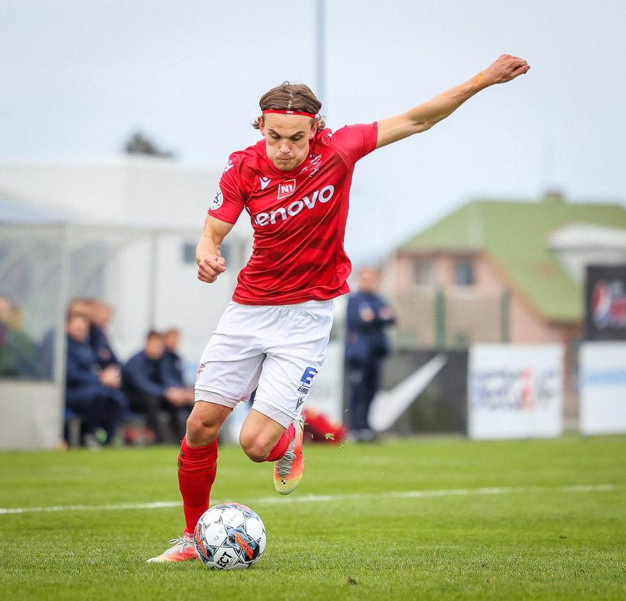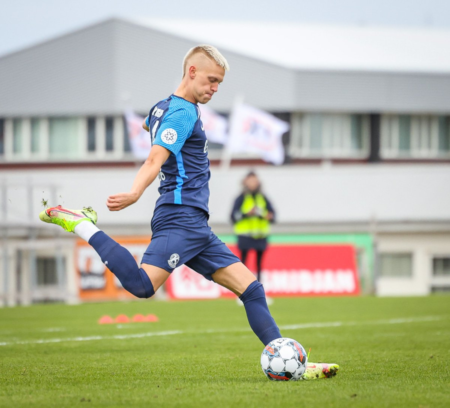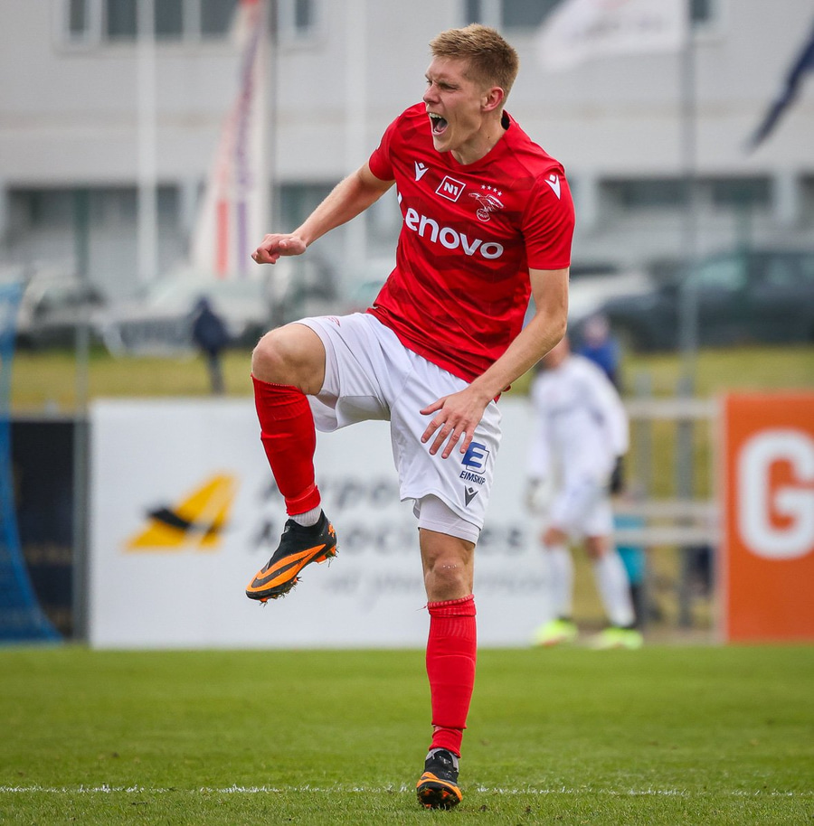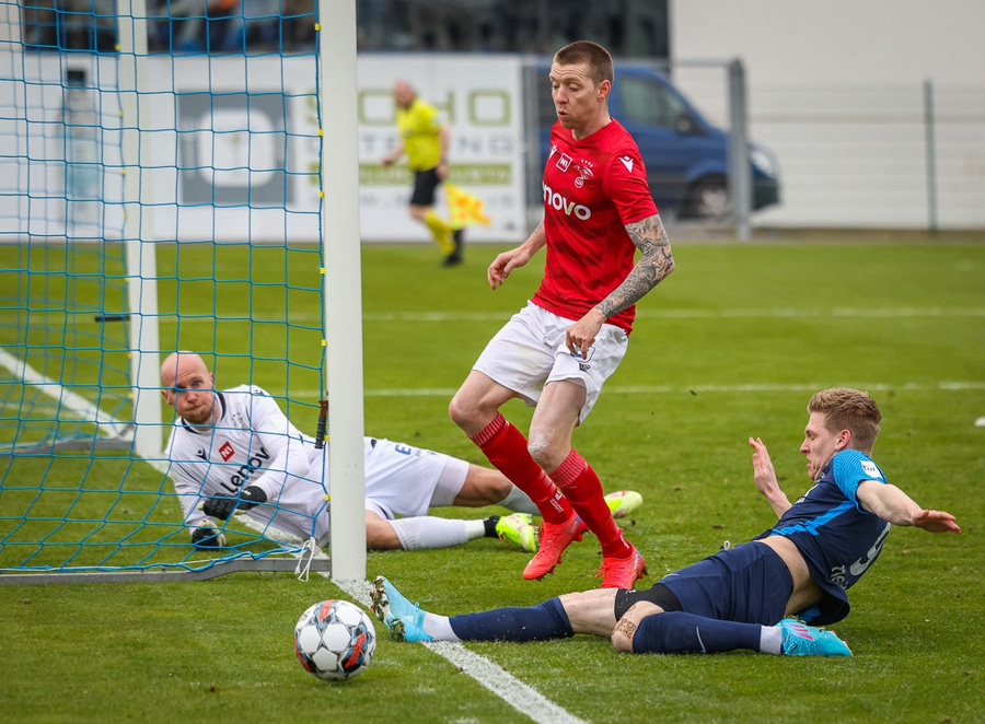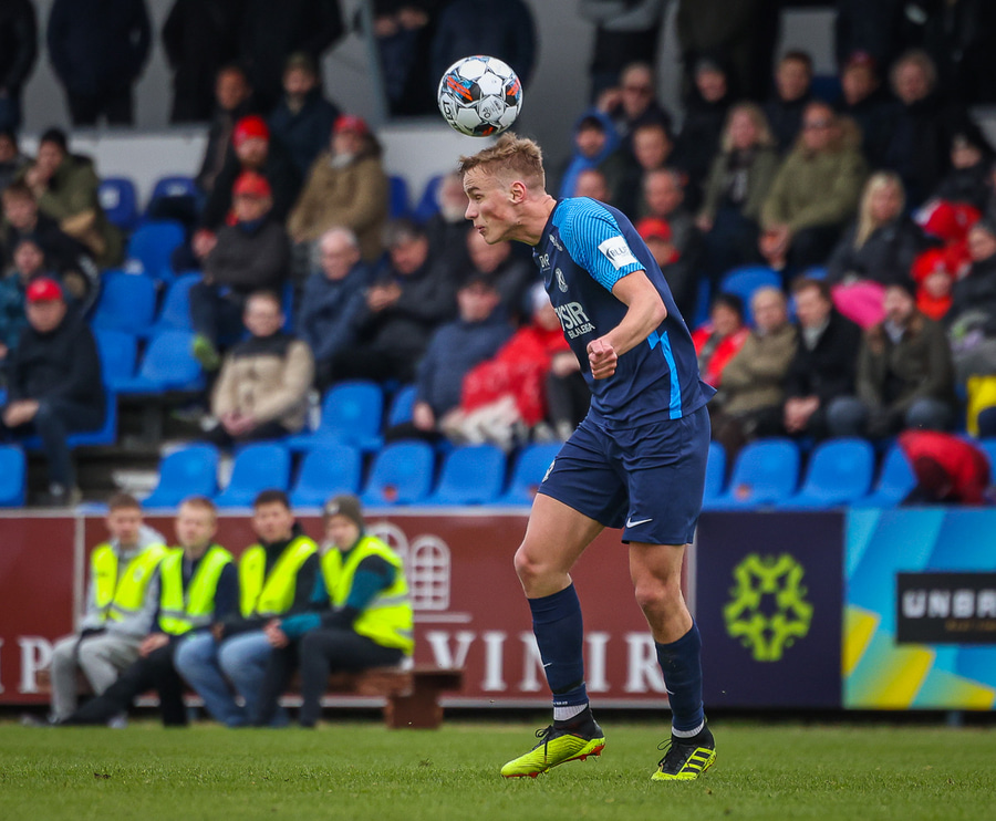 Leikur á Patrik og heldur svo bara áfram með boltann, rekur hann nánast upp að miðju þar sem hann missir hann fyrir fætur Frans sem reynir skotið en nær ekki nægum krafti í það og Hedlund kemst fyrir boltann.