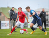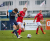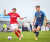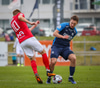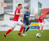 Tryggvi Hrafn við það að koma sér í fínasta færi, Magnús Þór mætir og hreinsar boltann útaf.