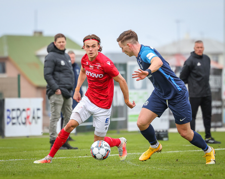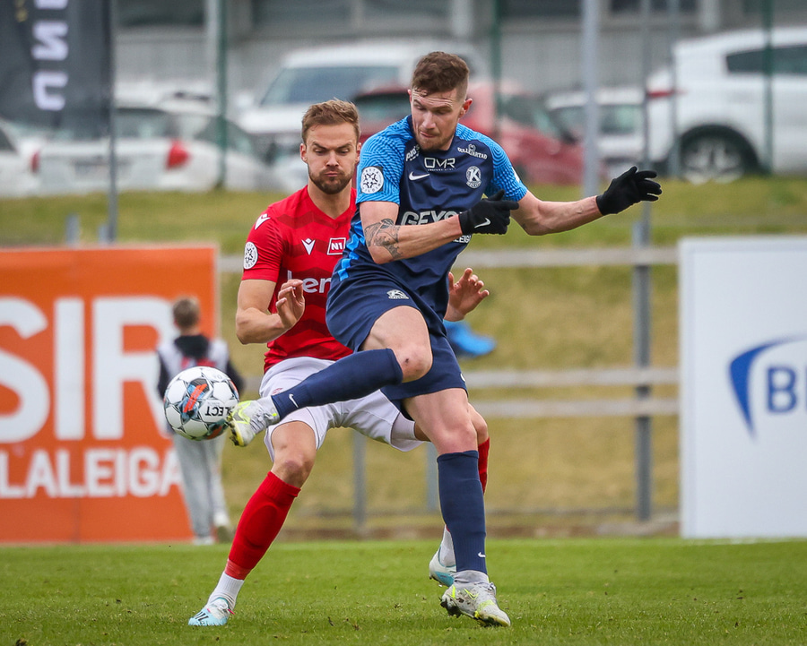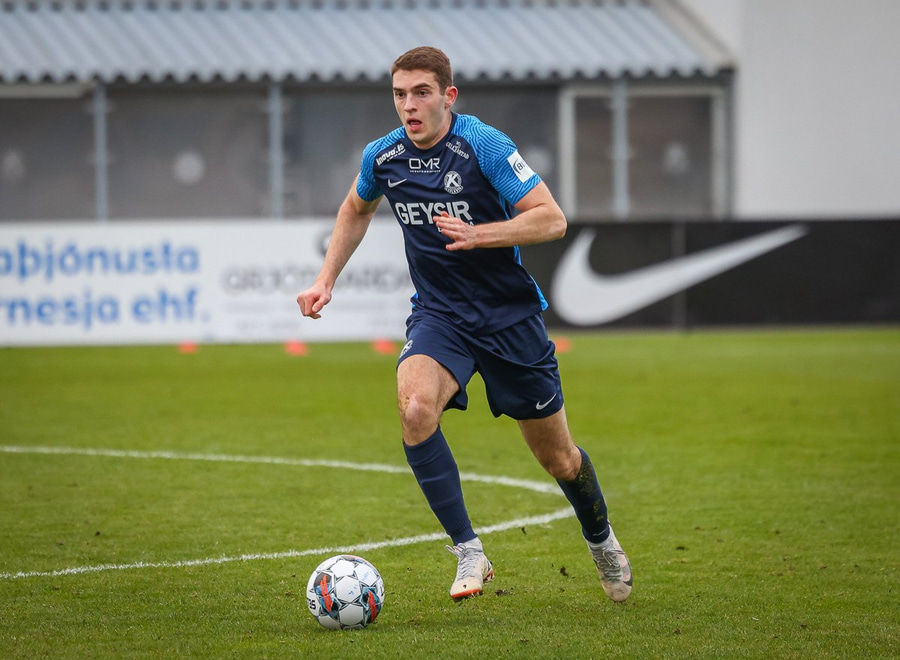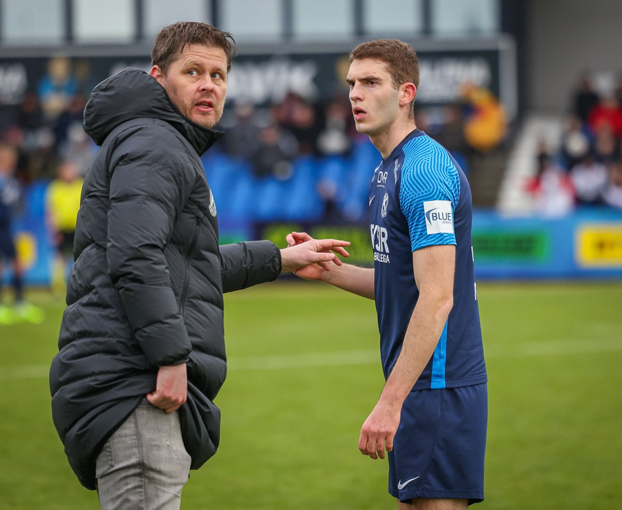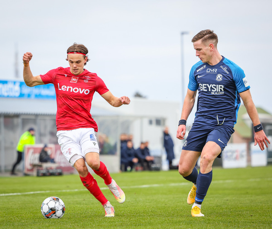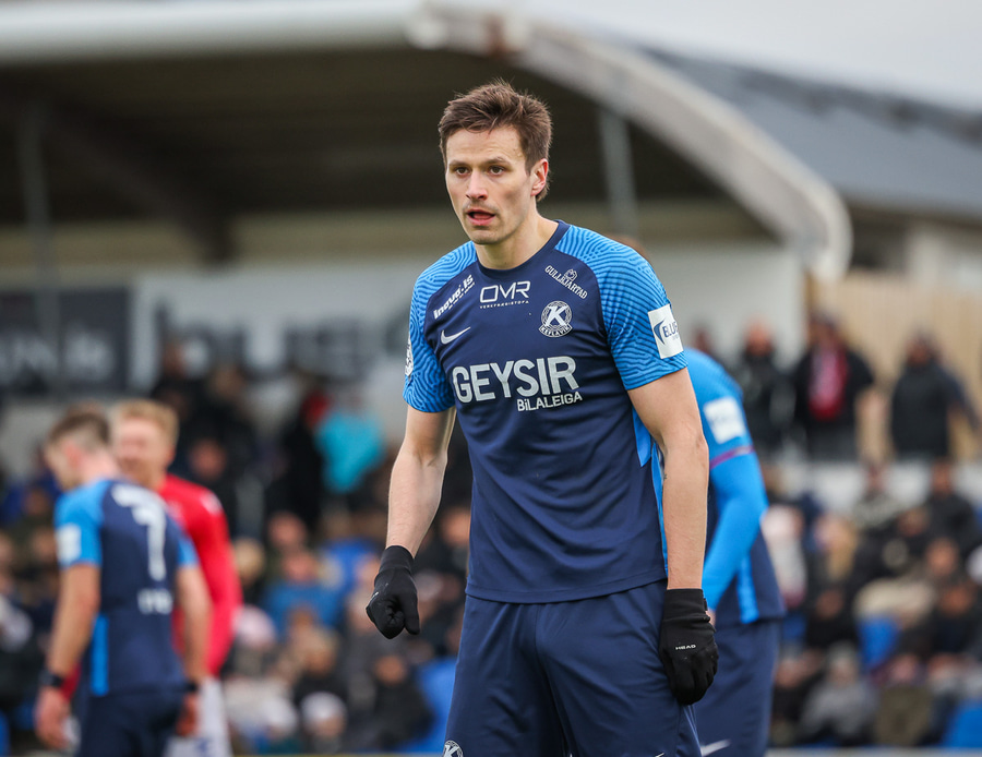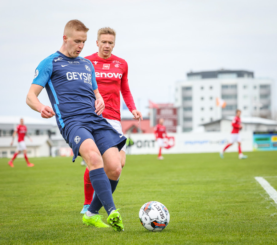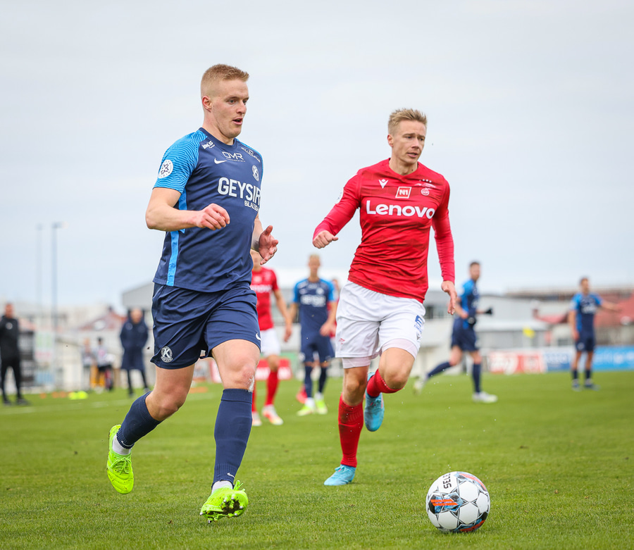 Rúnar Þór er allt í öllu í leik Keflavíkur, á hér laglegan samleik við Kian sem finnur Rúnar aftur í teignum en skot hans í varnarmann. Keflavík fær horn í kjölfarið.
