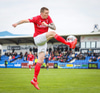 Tryggvi Hrafn vinnur horn eftir baráttu við Magnús Þór.