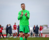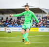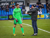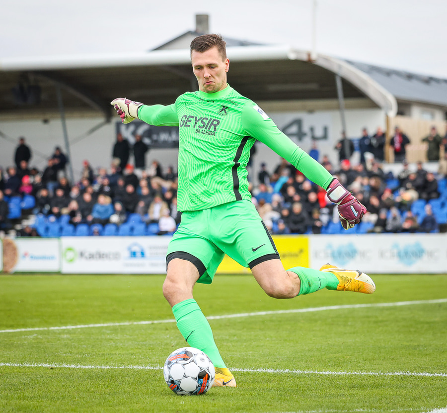 Fastur bolti fyrir frá vinstri á Patrick, Boltinn aðeins of hár fyrir hann og nær Patrick ekki góðri snertingu og boltinn í fang Sindra.
