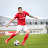 Heimamenn sækja, Sindri Þór fer vel með boltann og finnur Ásgeir í overlappinu, Ásgeir með fastann bolta innarlega sem Gibbs er nokkrum skónúmerum frá því að ná.