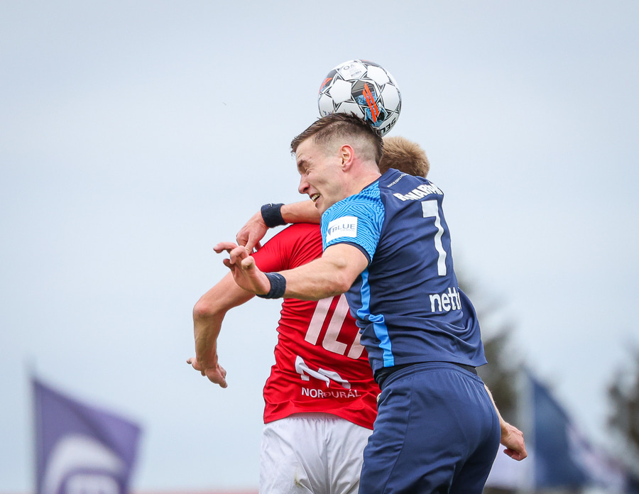 Patrik með lúmskan bolta inn á teiginn frá vinstri, Hatakka fyrstur á boltann og gefur horn.