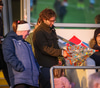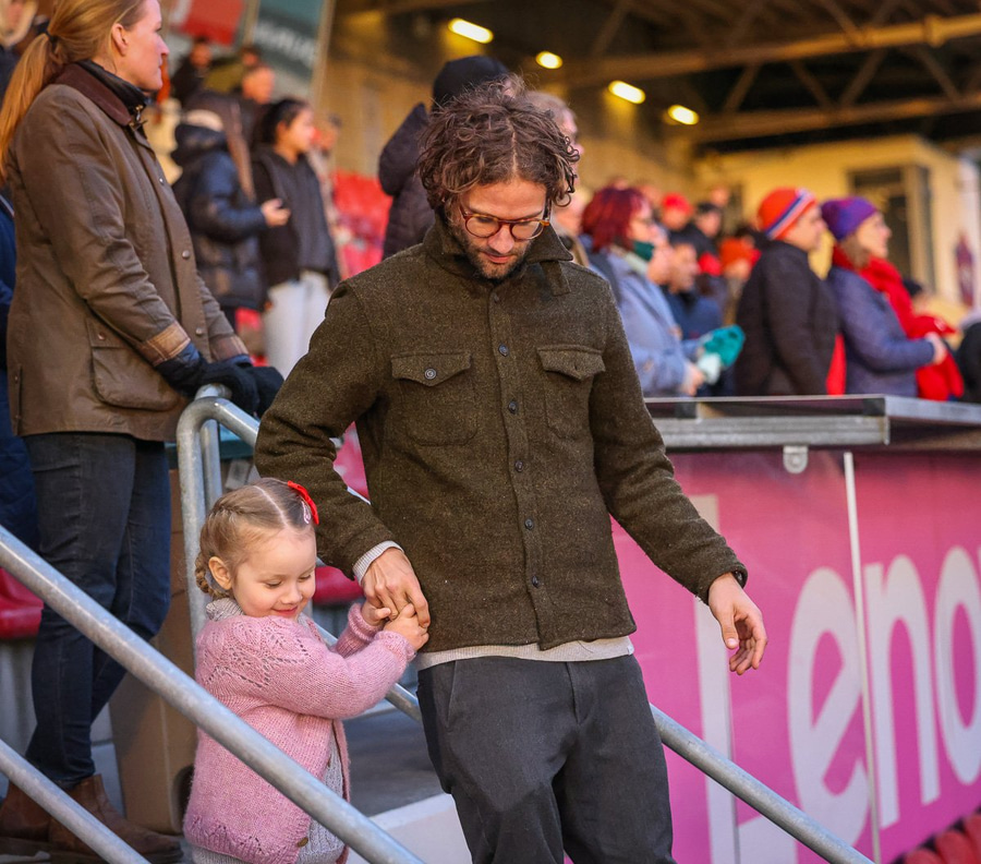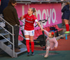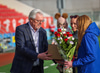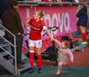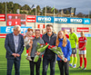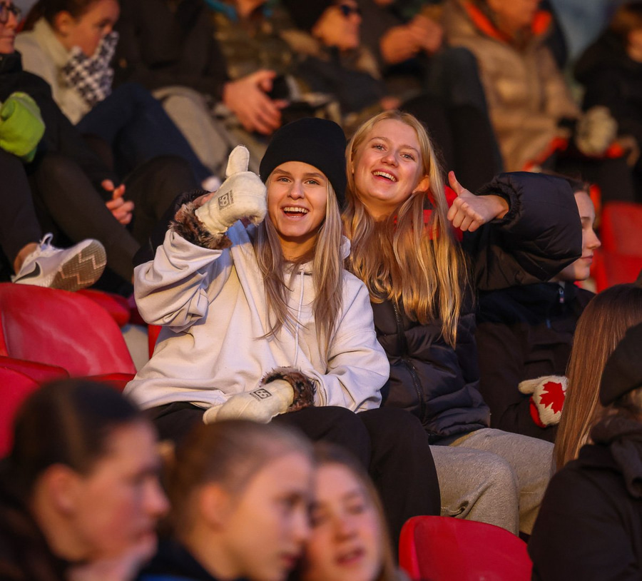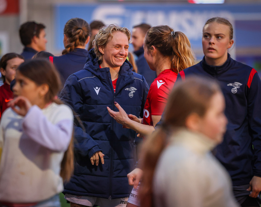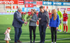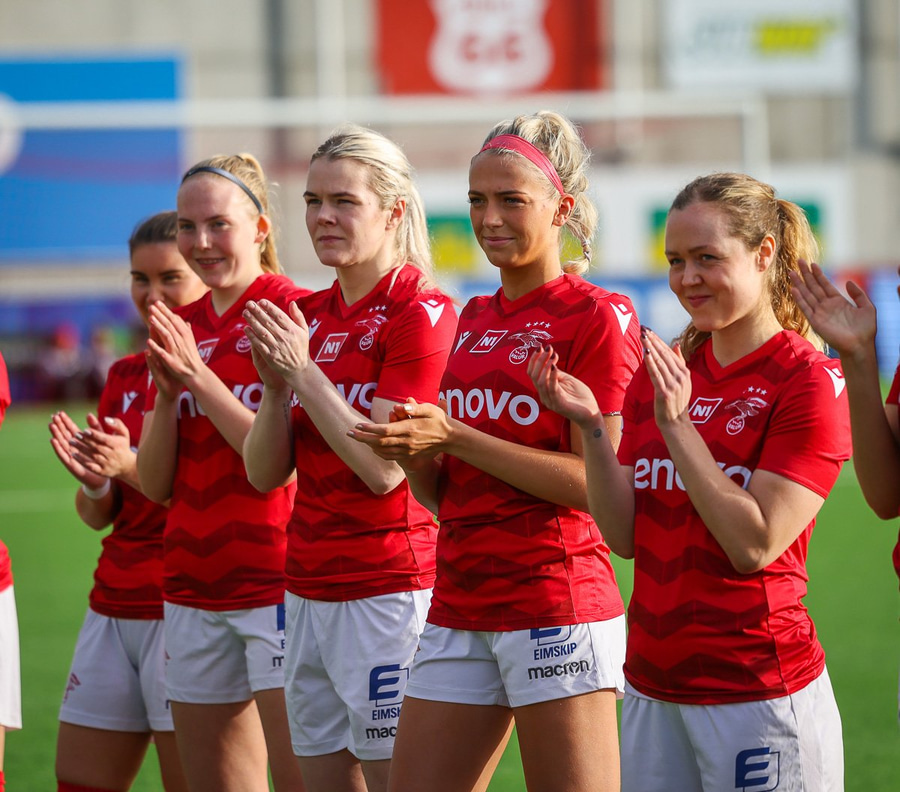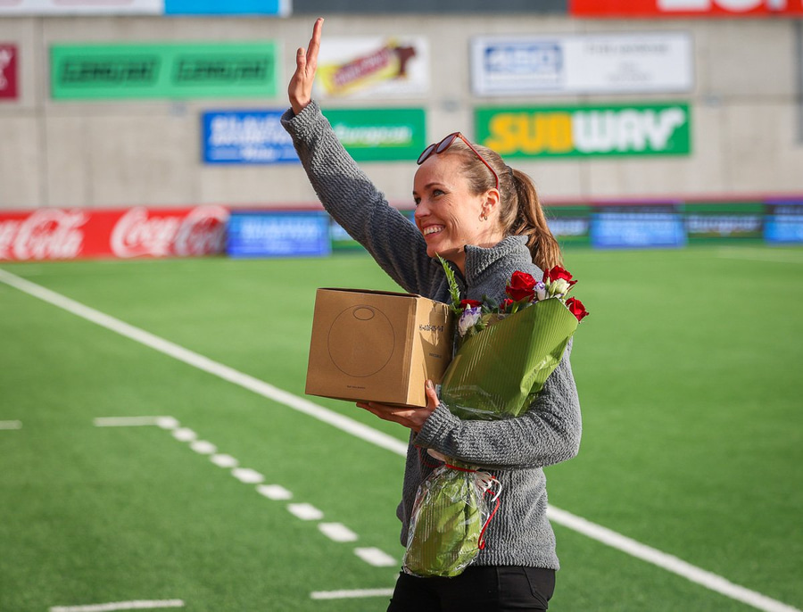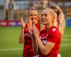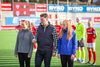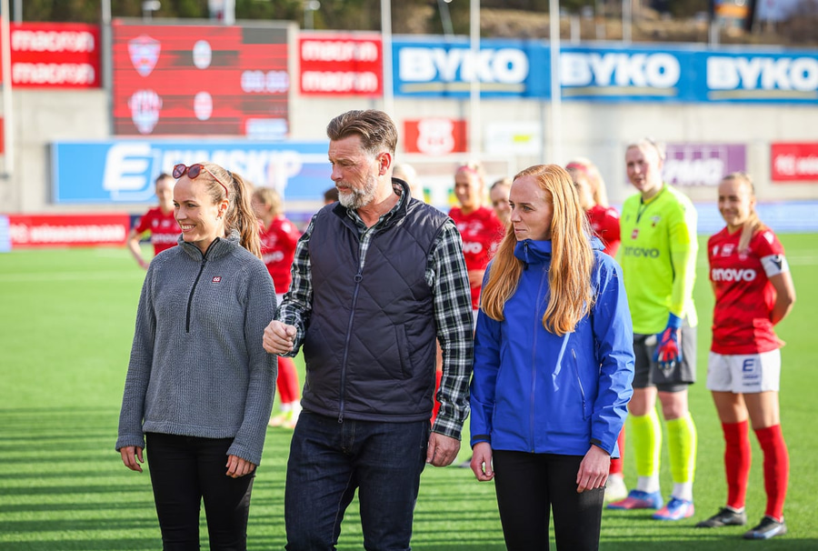 Liðin eru mætt út á völl og það eru heiðursgestir leiksins líka. Drottningarnar Dóra María Lárusdóttir og Thelma Björk Einarsdóttir, fyrrum leikmenn Vals, eru heiðraðar hér fyrir leik. Goðsagnir!
