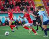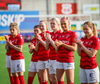 Valskonur sækja sér enn eina hornspyrnuna. Ásdís Karen tekur. Setur boltann inná teig. Þar nær Þórdís Elva þrumuskoti sem virðist vera á leið í markið en fer í varnarmann og aftur fyrir!