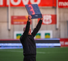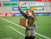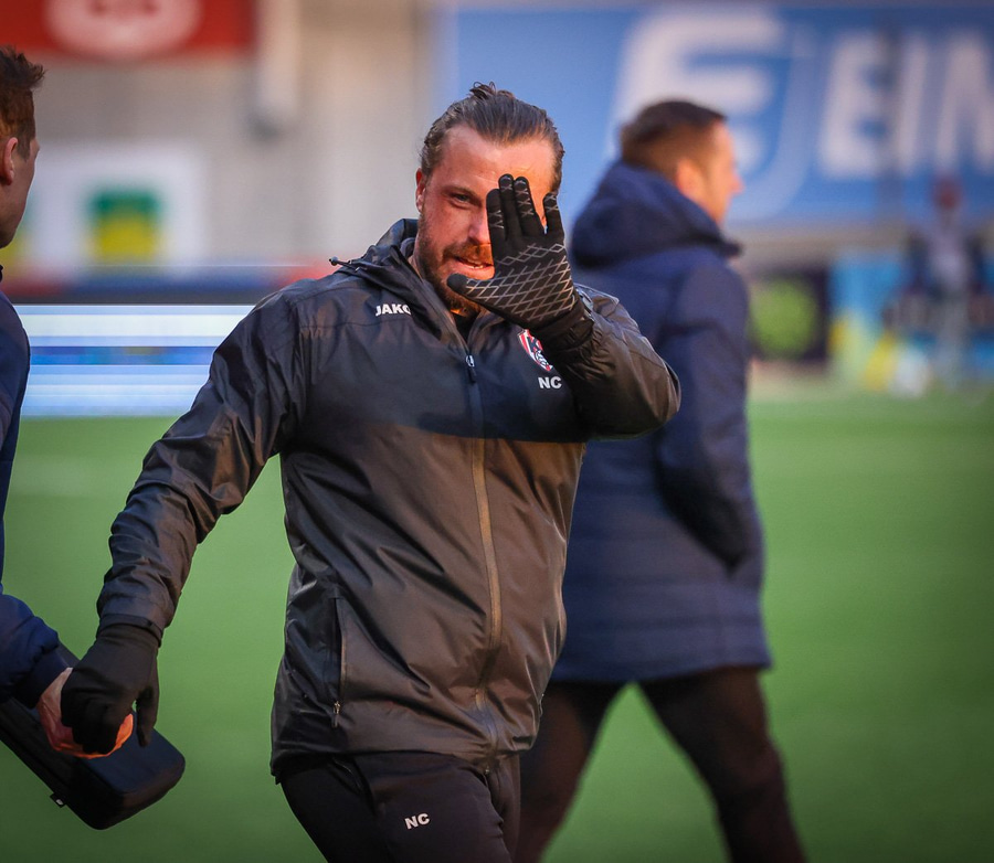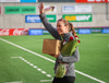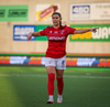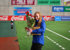 Þórdís Hrönn reynir að hamra járnið á meðan það er heitt! Neglir í stöngina á marki gestanna!