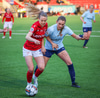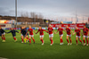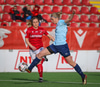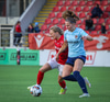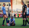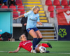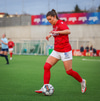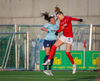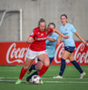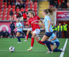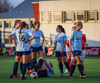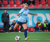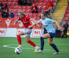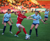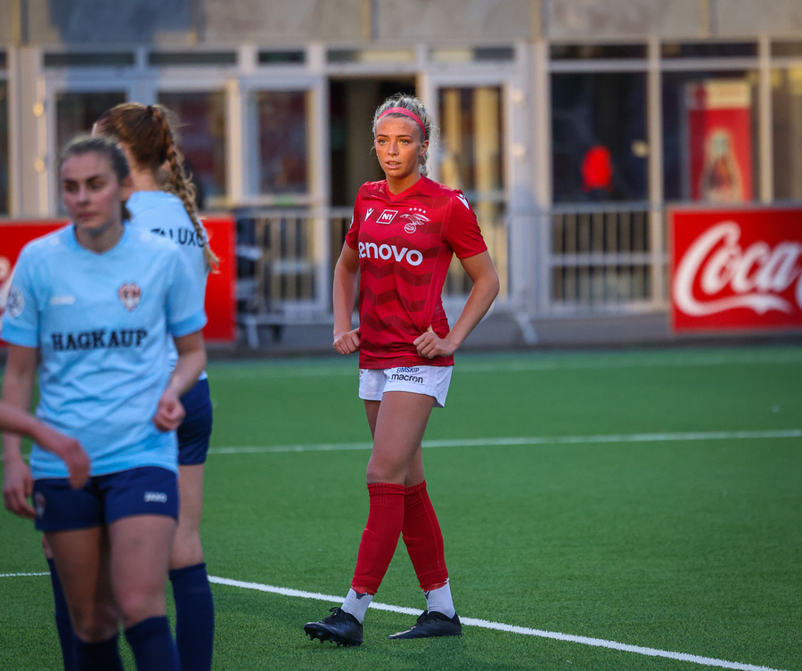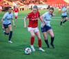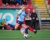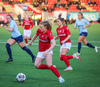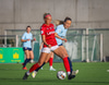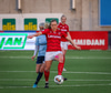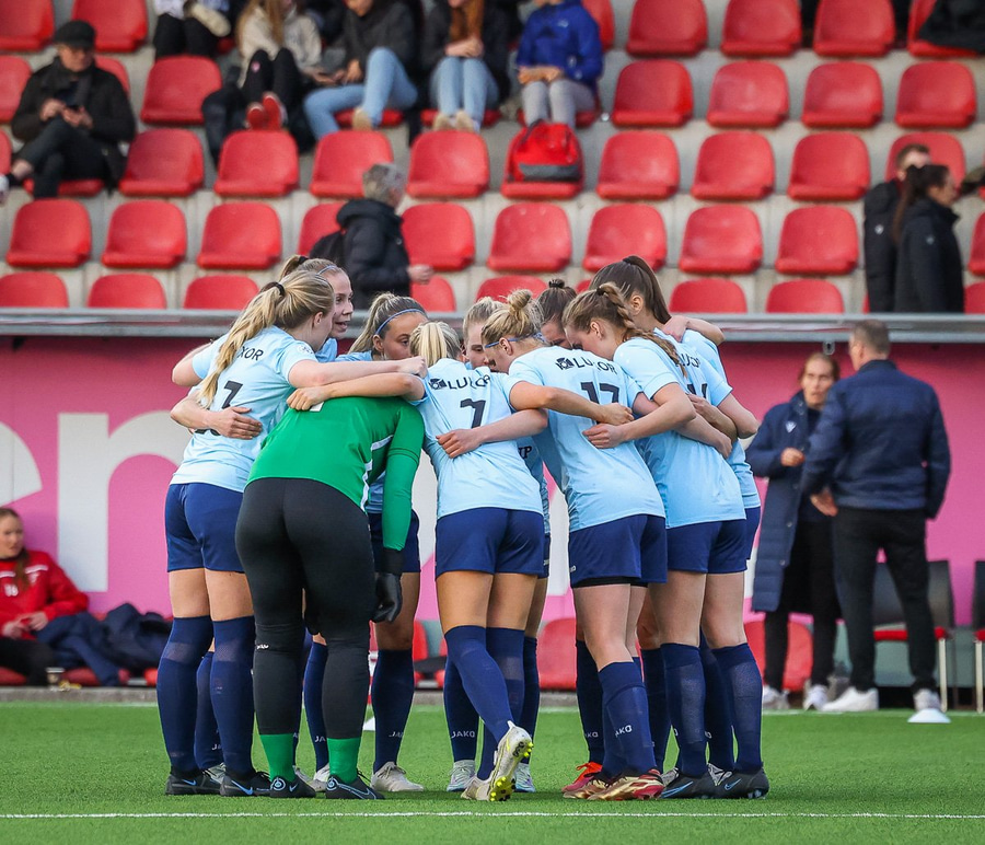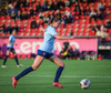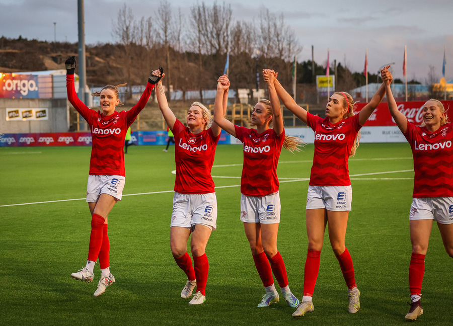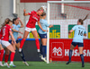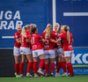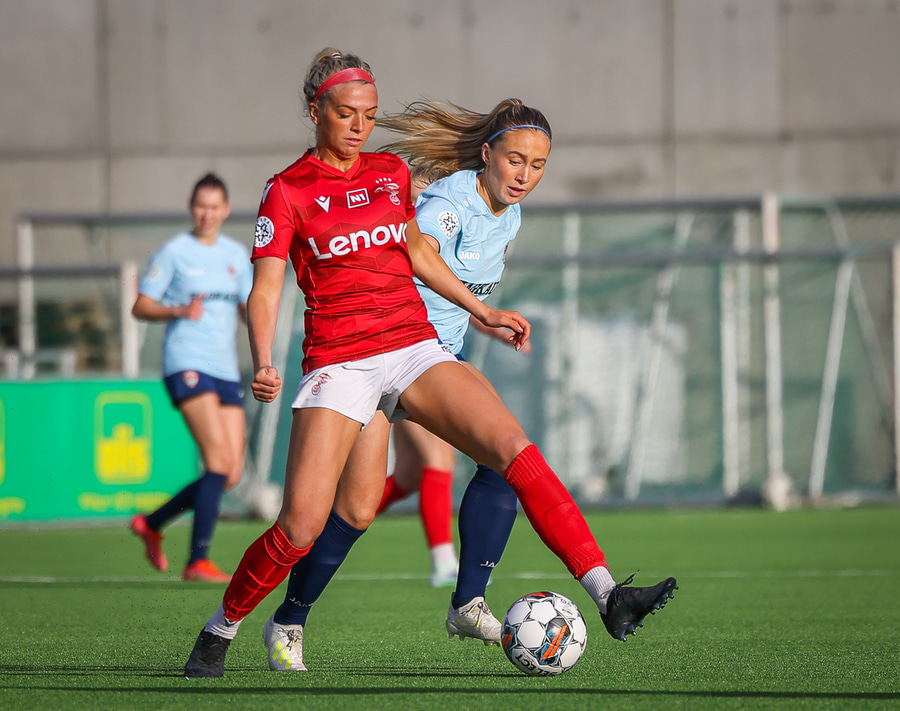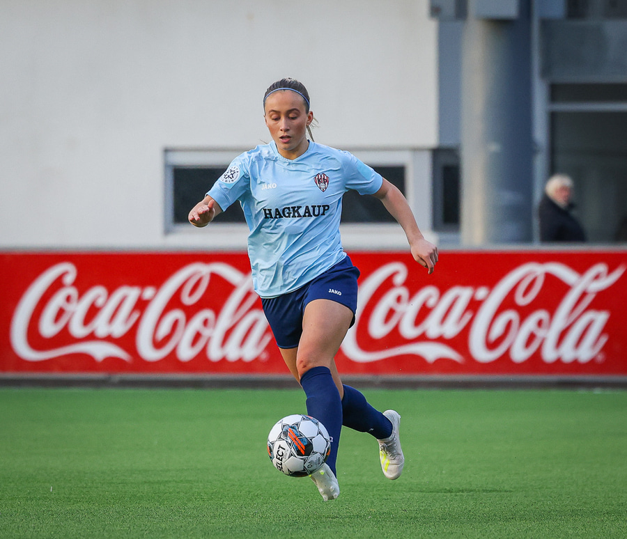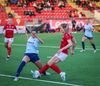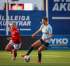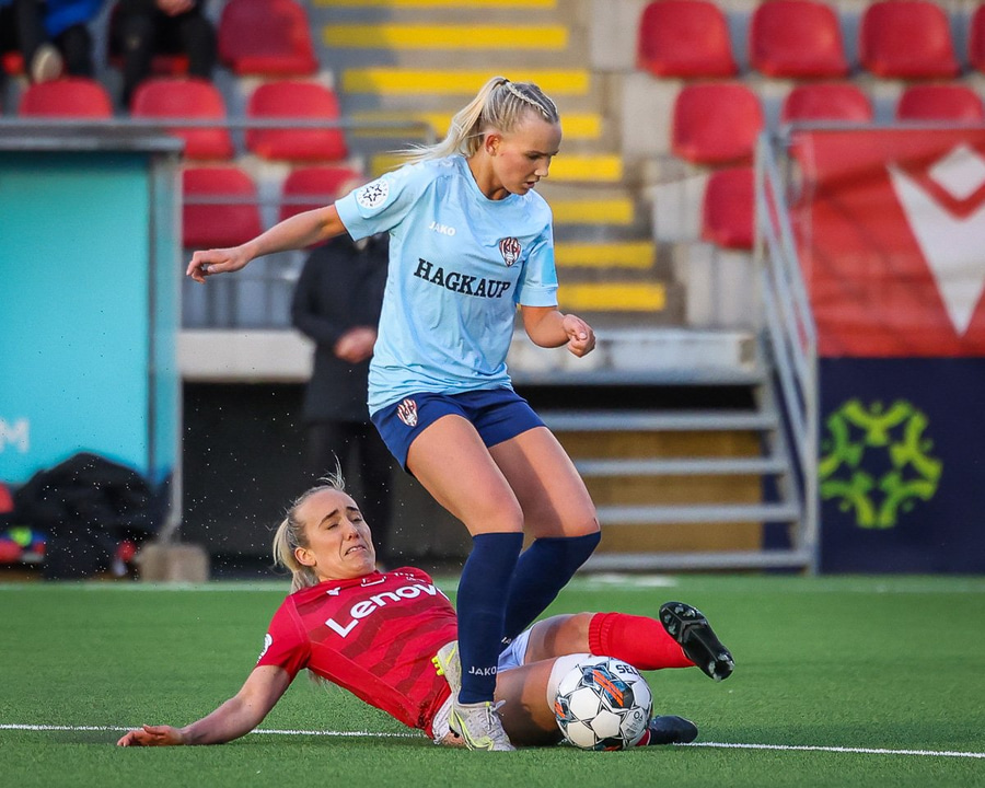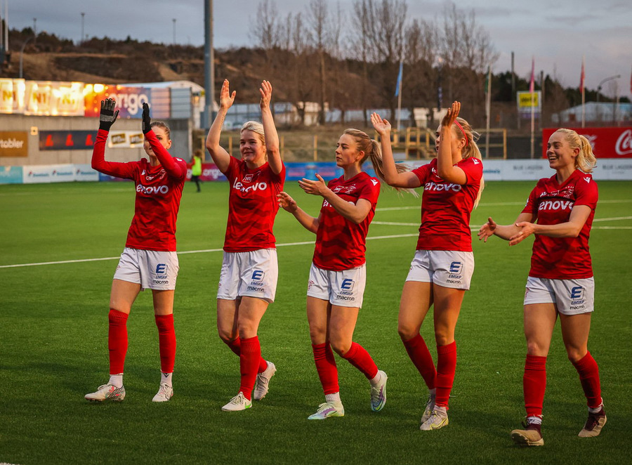 Heimakonur sparka leiknum í gang. Þær sækja í átt að Öskjuhlíðnni.